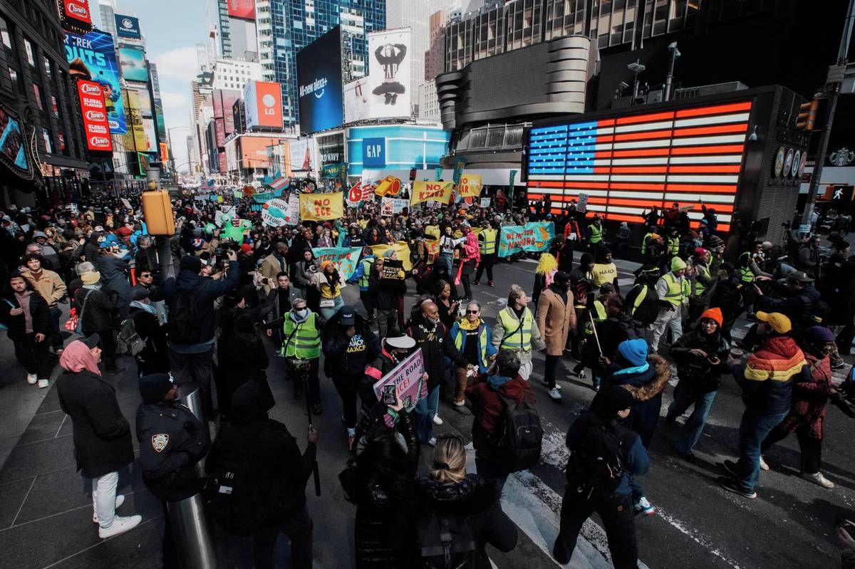 Protest No Kings v New Yorku na Times Square.