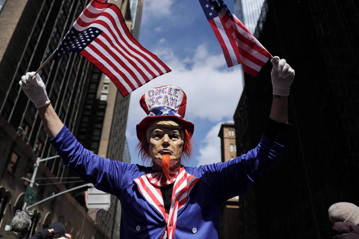 „Donald Trump“ demonstrující za politiku Donalda Trumpa v ulicích New Yorku.