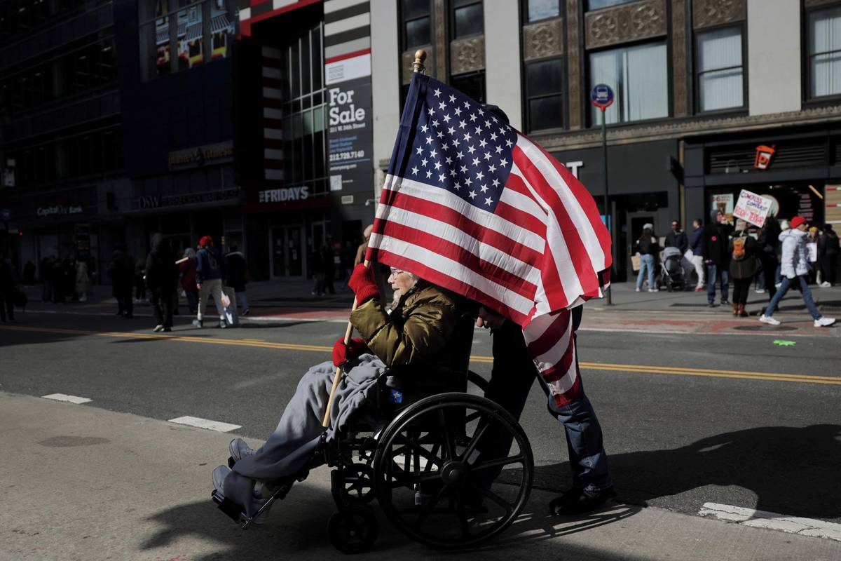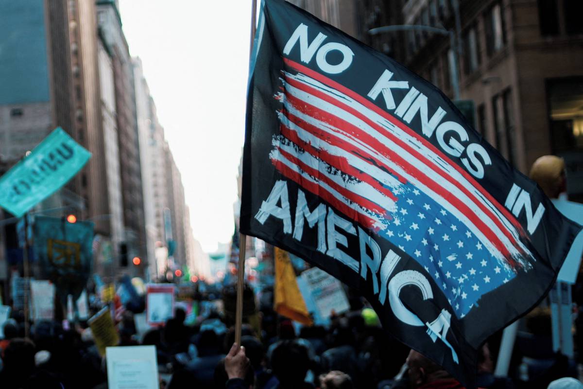 Protest No Kings v ulicích New Yorku.