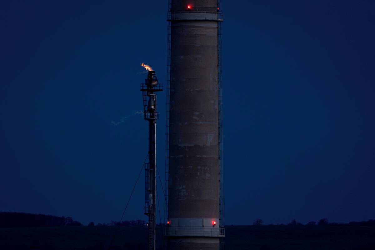 Bezpečnostní hořák, takzvaný flare, je vidět do velké dálky. Spaluje přebytečné nebo nebezpečné plyny.