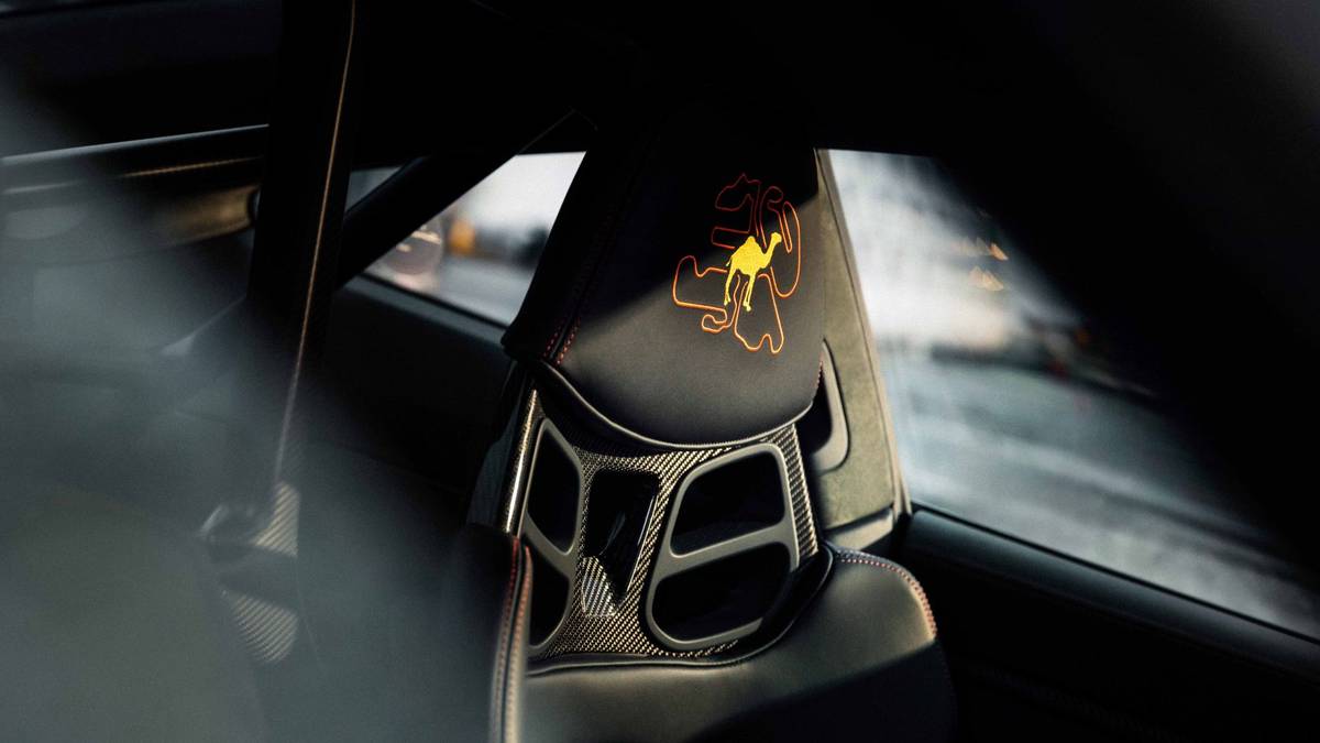Speciální výšivka na hlavových opěrkách Porsche 911 S/T Sonderwunsch Camel GT Challenge