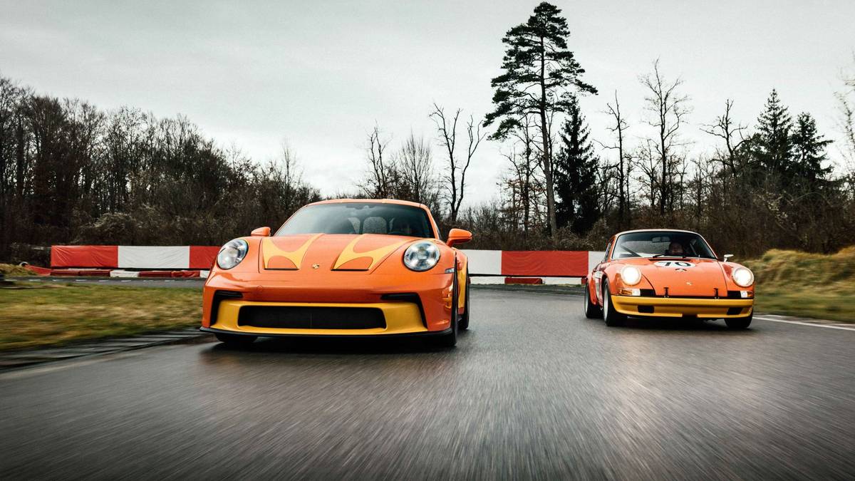 Porsche 911 S/T Sonderwunsch Camel GT Challenge po boku svého předobrazu.