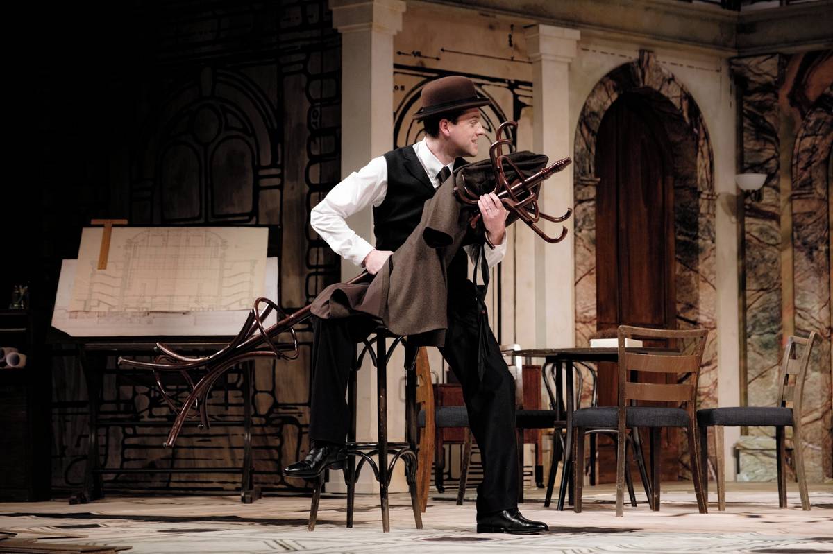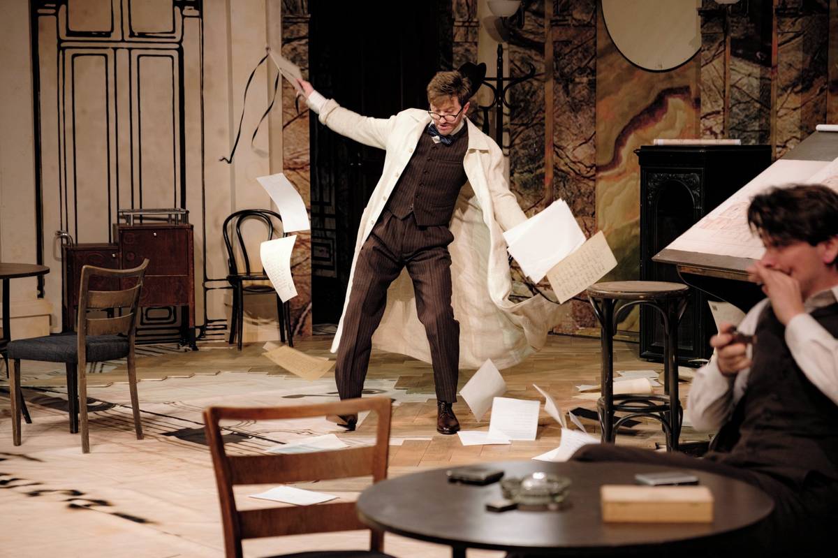 Na fotografii z inscenace Fellnerův Helmer a Helmerův Fellner, která měla o víkendu premiéru v brněnském Mahenově divadle, je Pavel Čeněk Vaculík jako Klenák.