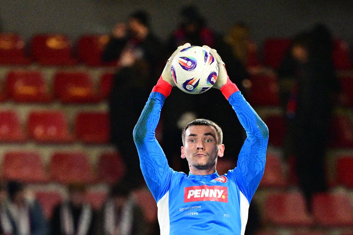 Rozcvičení gólmana Matěje Kováře.