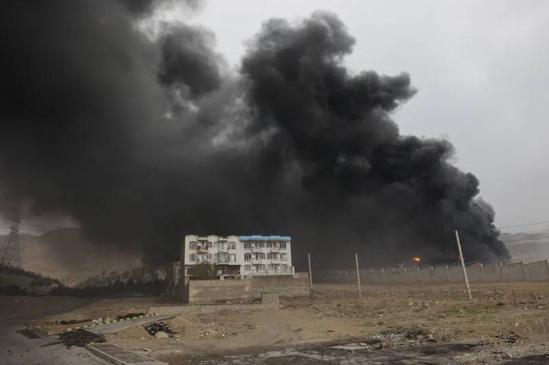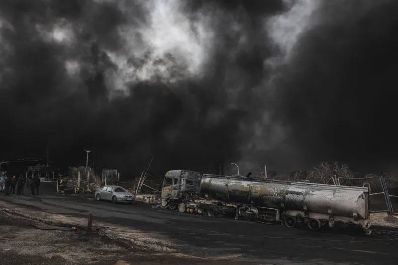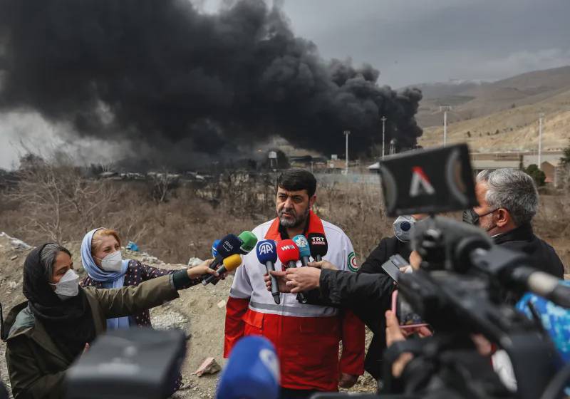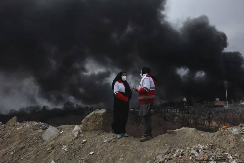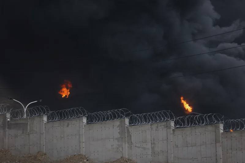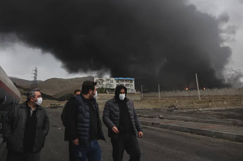 Následky útoku na palivové nádrže u Teheránu (snímky z 8. března 2026)