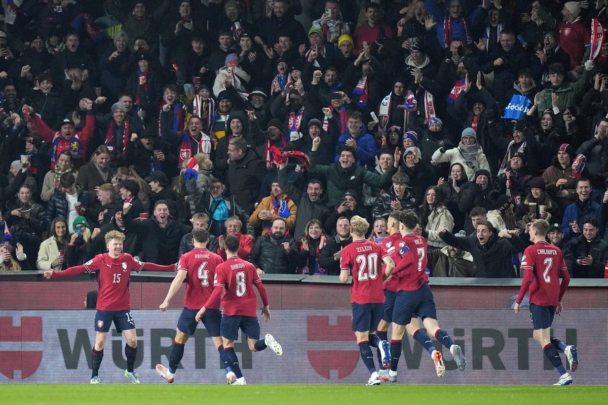 Česká radost po gólu kapitána Ladislava Krejčího.