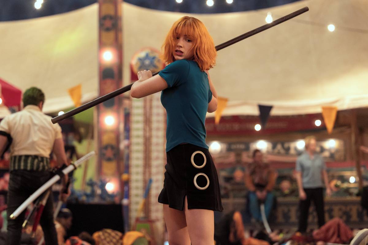 Iñaki Godoy jako Monkey D. Luffy a Charithra Chandran v roli Miss Wednesday.