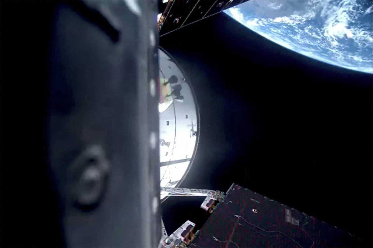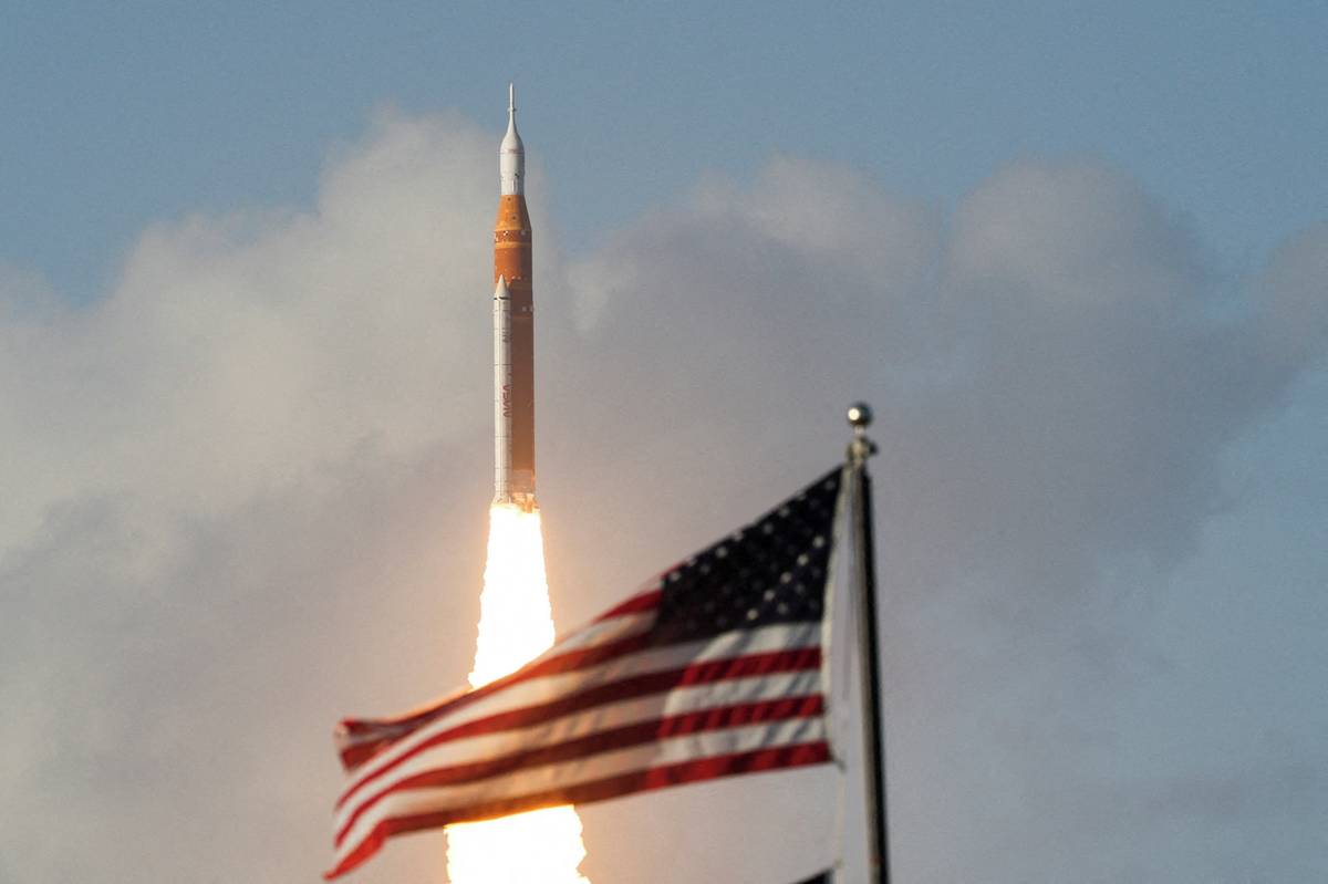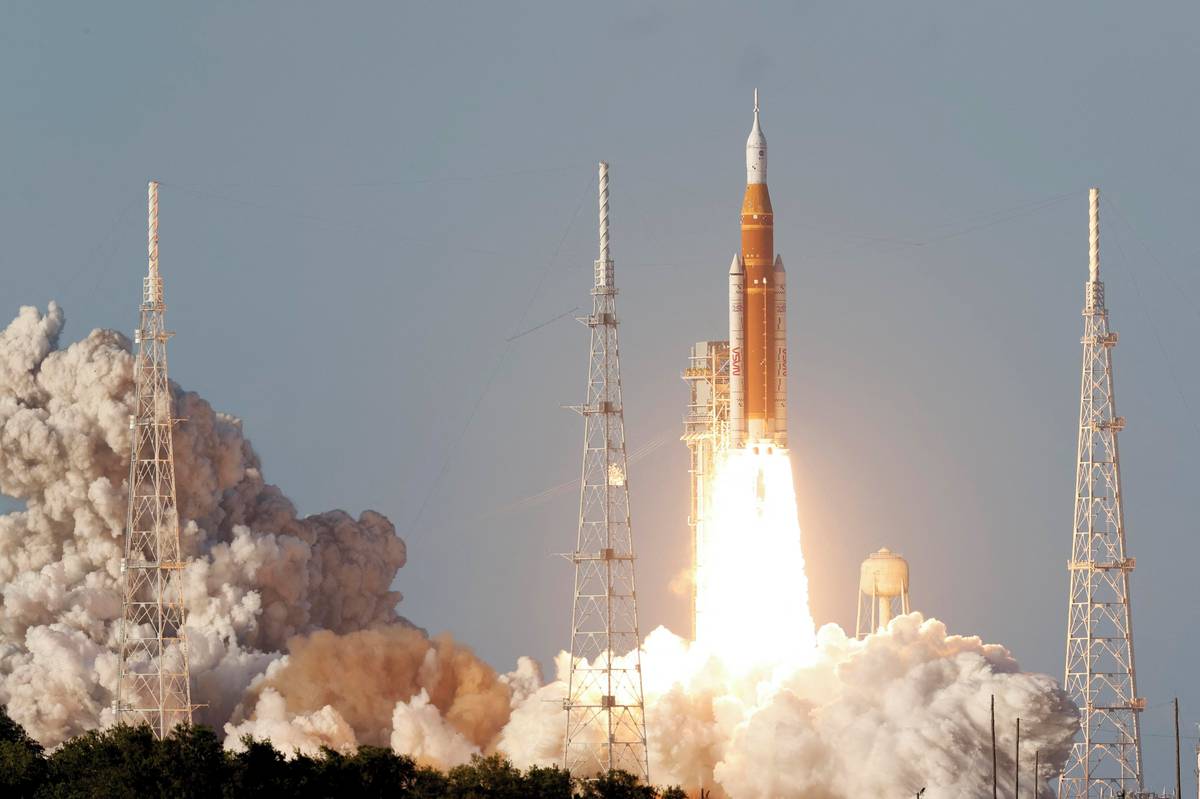 (Loď Orion cestou do vesmíru, 1. dubna, mys Canaveral.)