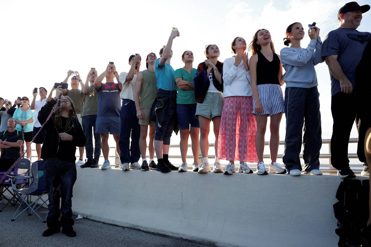 Posádka už krátce po startu začala plnit cíle. Jedním z prvních byl test manuálního řízení lodi, aby se potvrdilo, že se dá se zařízením manévrovat, pokud by výchozí automatické řízení selhalo. (Lidé přihlížející startu mise Artemis II na floridském mysu Canaveral, 1. dubna.)