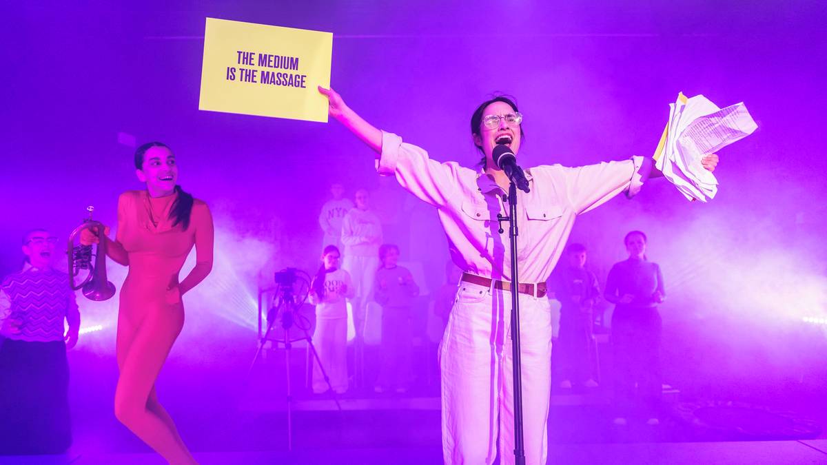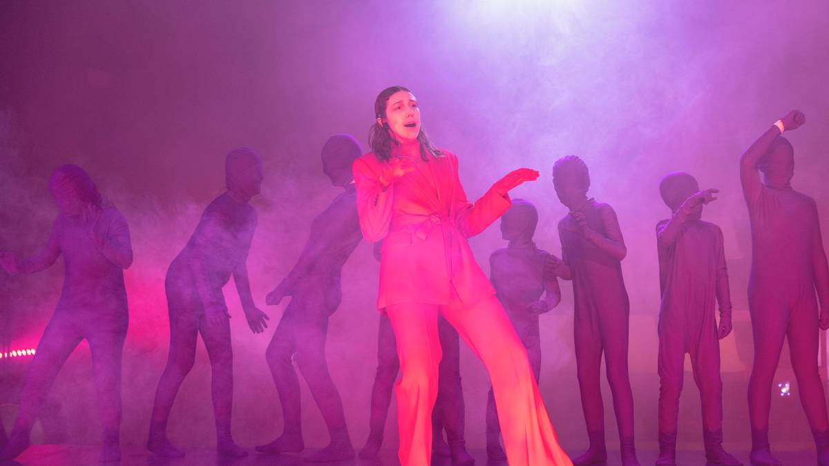 Na jevišti se představují i dětské sbory. Náročné téma se umělci pokusili pojmout s humorem.