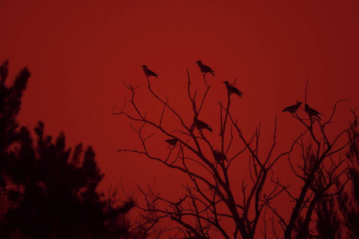 Nebe se zbarvilo do ztemnělé oranžovo-červené barvy a připomínalo scenérie Marsu.