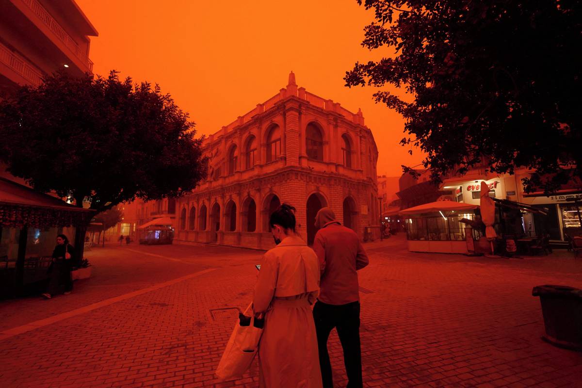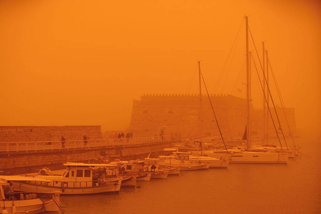 Několik letů směřujících na Krétu muselo být tentýž den odkloněno, protože ostrov zahalila písečná bouře z Afriky.