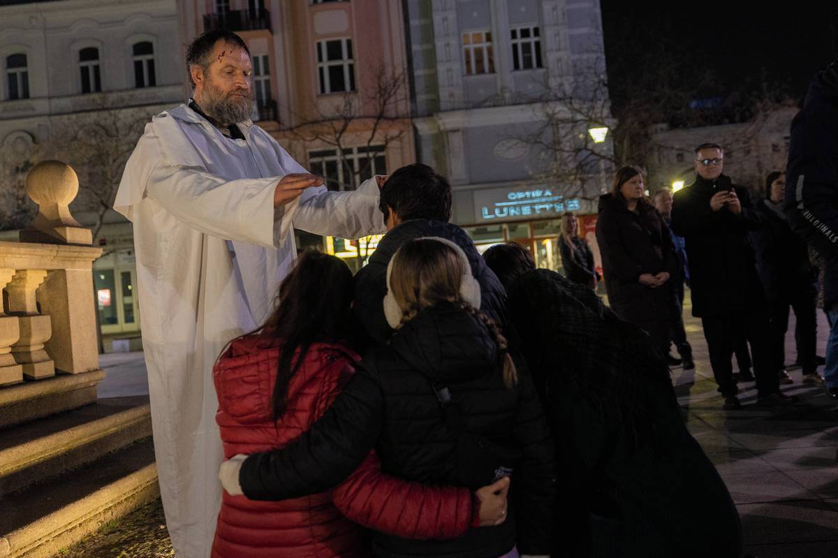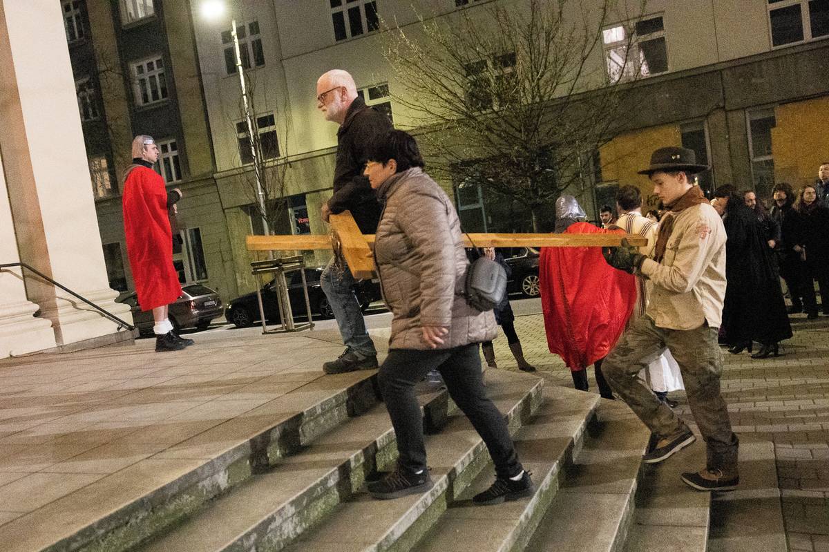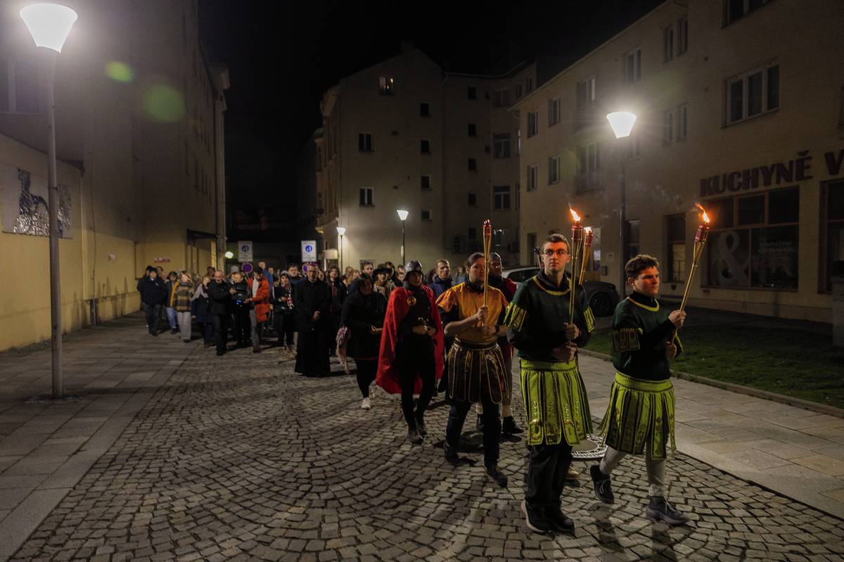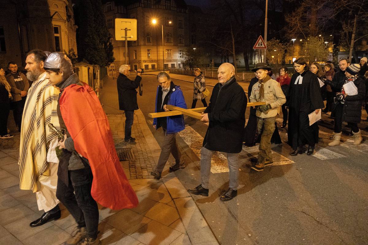 Účastníci křížové cesty vycházejí z Husova sadu v Moravské Ostravě.