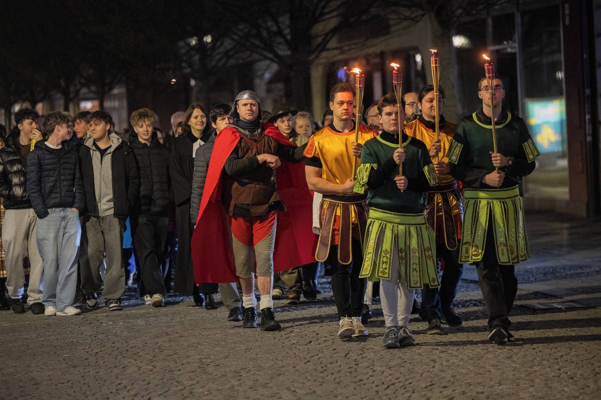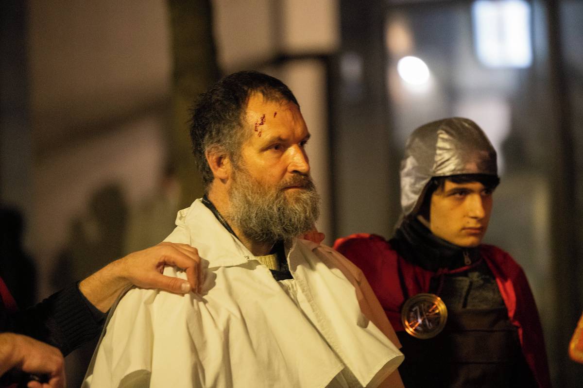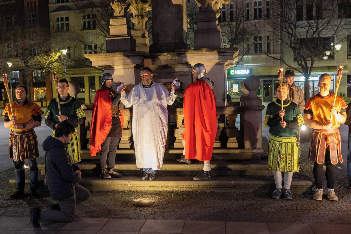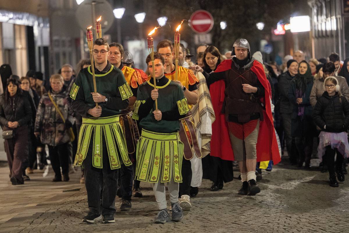 Účastníci křížové cesty vycházejí z Husova sadu v Moravské Ostravě.