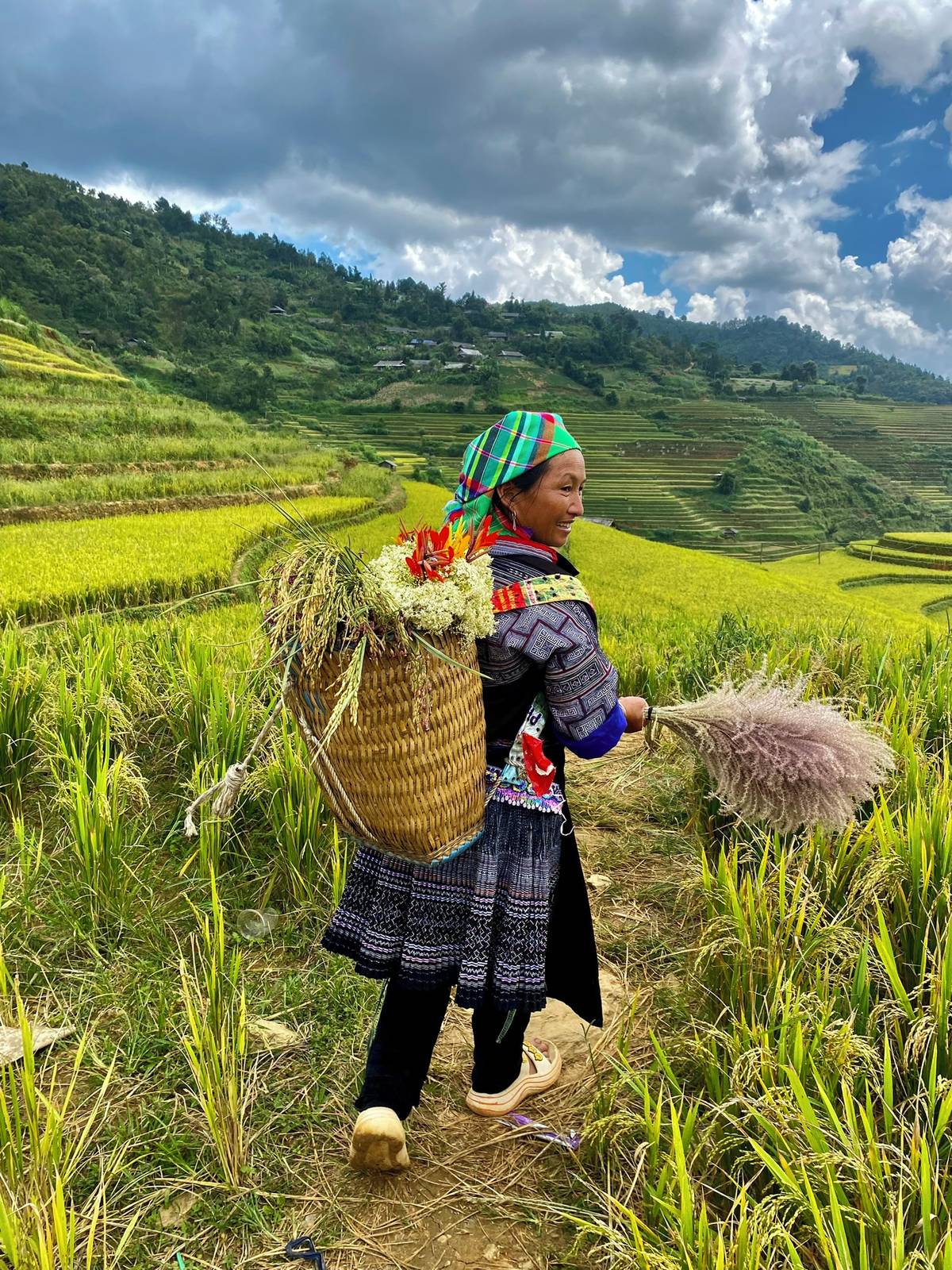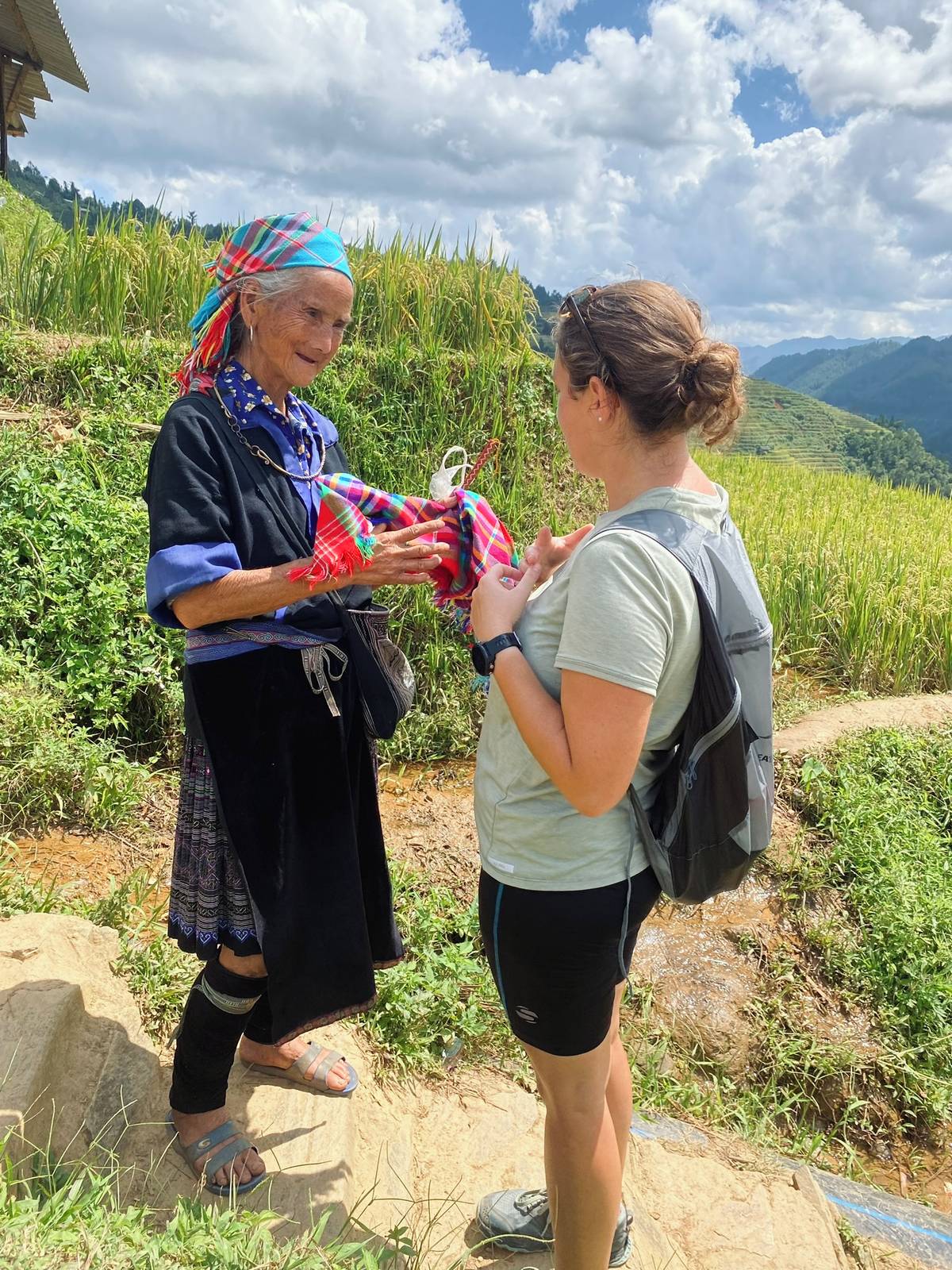 Hmongská babička na rýžových políčkách