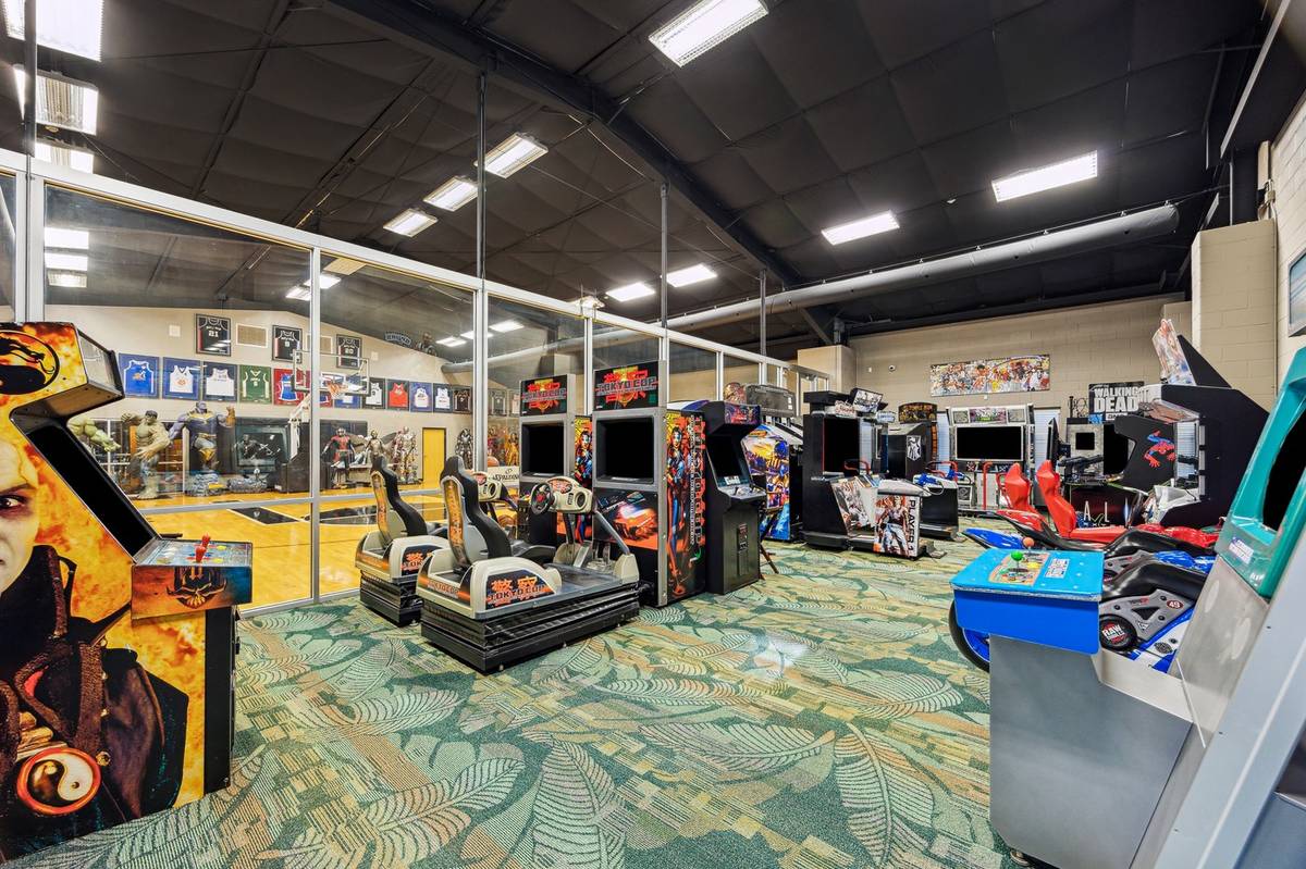 Ve skutečnosti to není jenom aquapark. Basketbalista si dal záležet, aby jeho domov zahrnoval veškeré druhy zábavy pro jeho rodinu a přátele. Včetně herny s automaty.