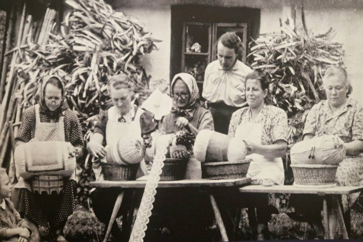 Krajkářsky na historické fotografii vystavené v expozici muzea.