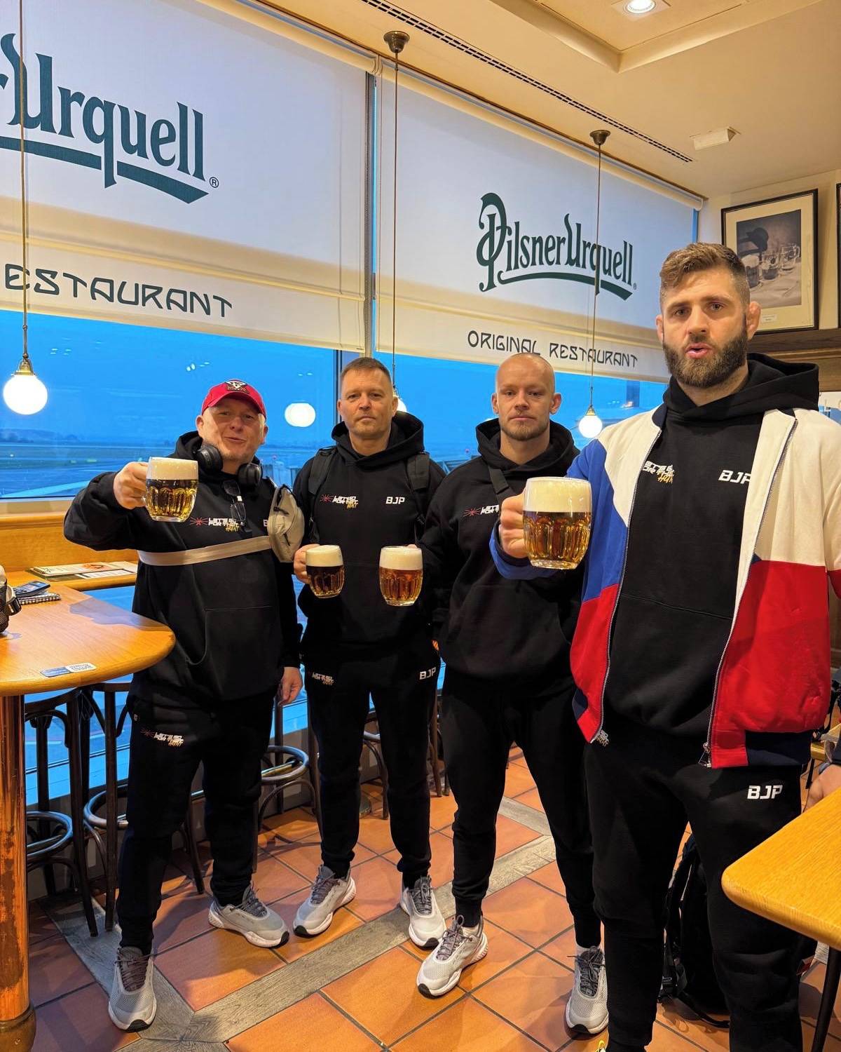 Jiří Procházka se svým trenérským týmem před odletem do Miami.
