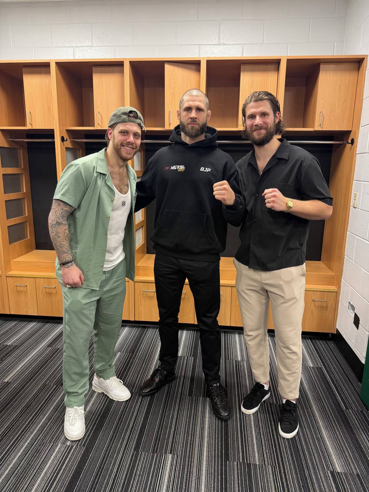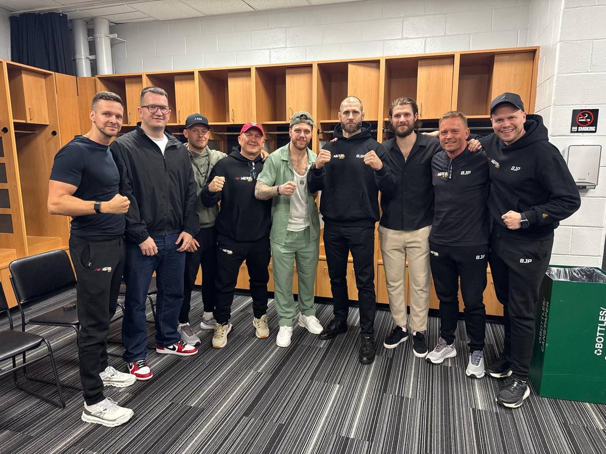 Jiří Procházka se svým týmem navštívil i zápas NHL mezi Floridou a Bostonem. Nechyběla ani společná fotografie s Davidem Pastrňákem a Pavlem Zachou.
