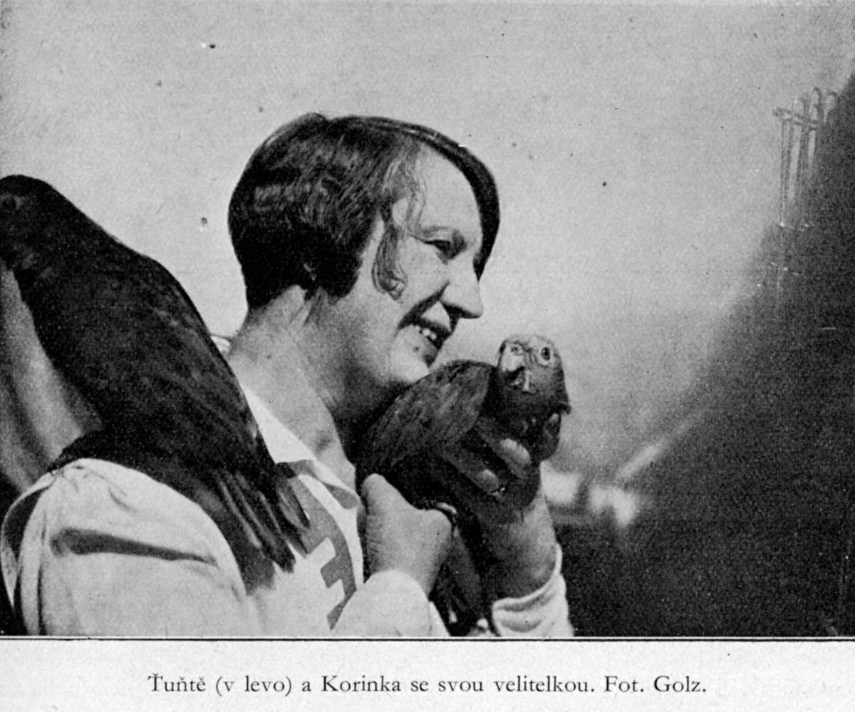 Paní Jandová s papoušky.