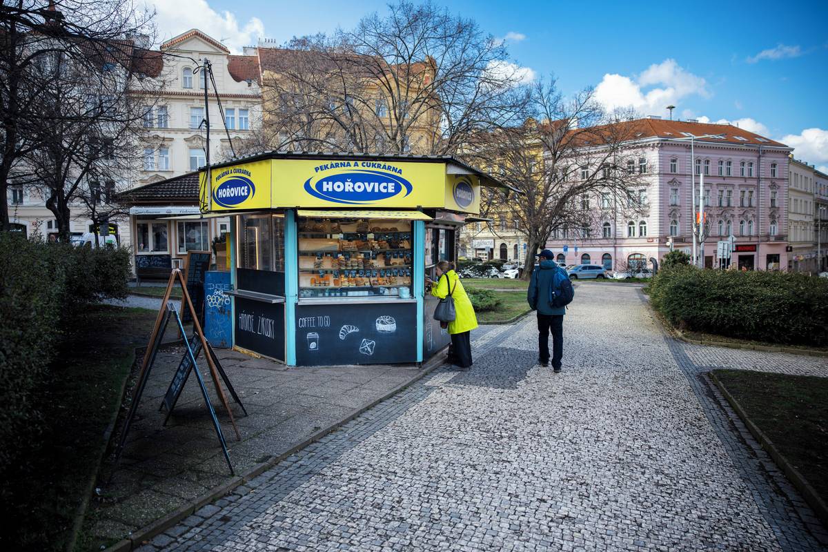 Stánek naproti přes ulici se proměnil v prodejnu pečiva.