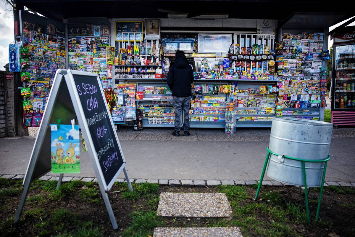 „Vy máte fakt všechno“, raduje se řemeslník při zastávce u počernické trafiky.