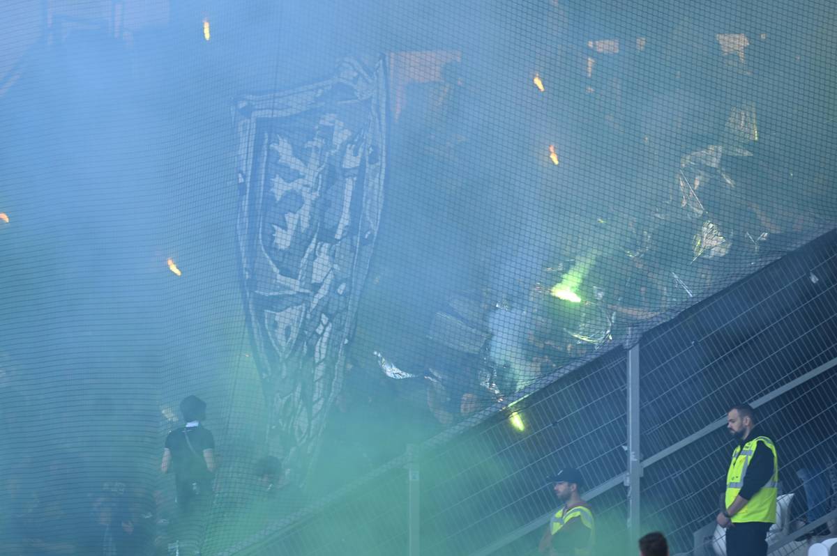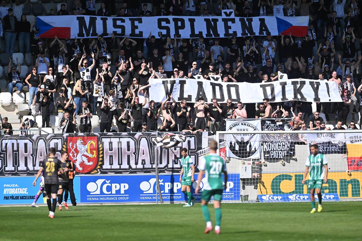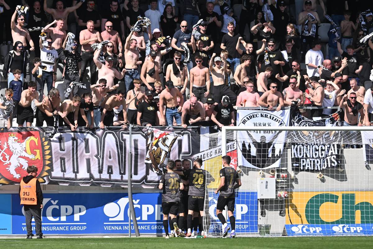 Oslava hradeckých fanoušků po vstřelené brance do sítě Bohemky