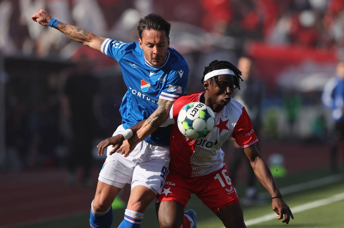 Daniel Holzer z Baníku a slávista David Moses v tvrdém souboji