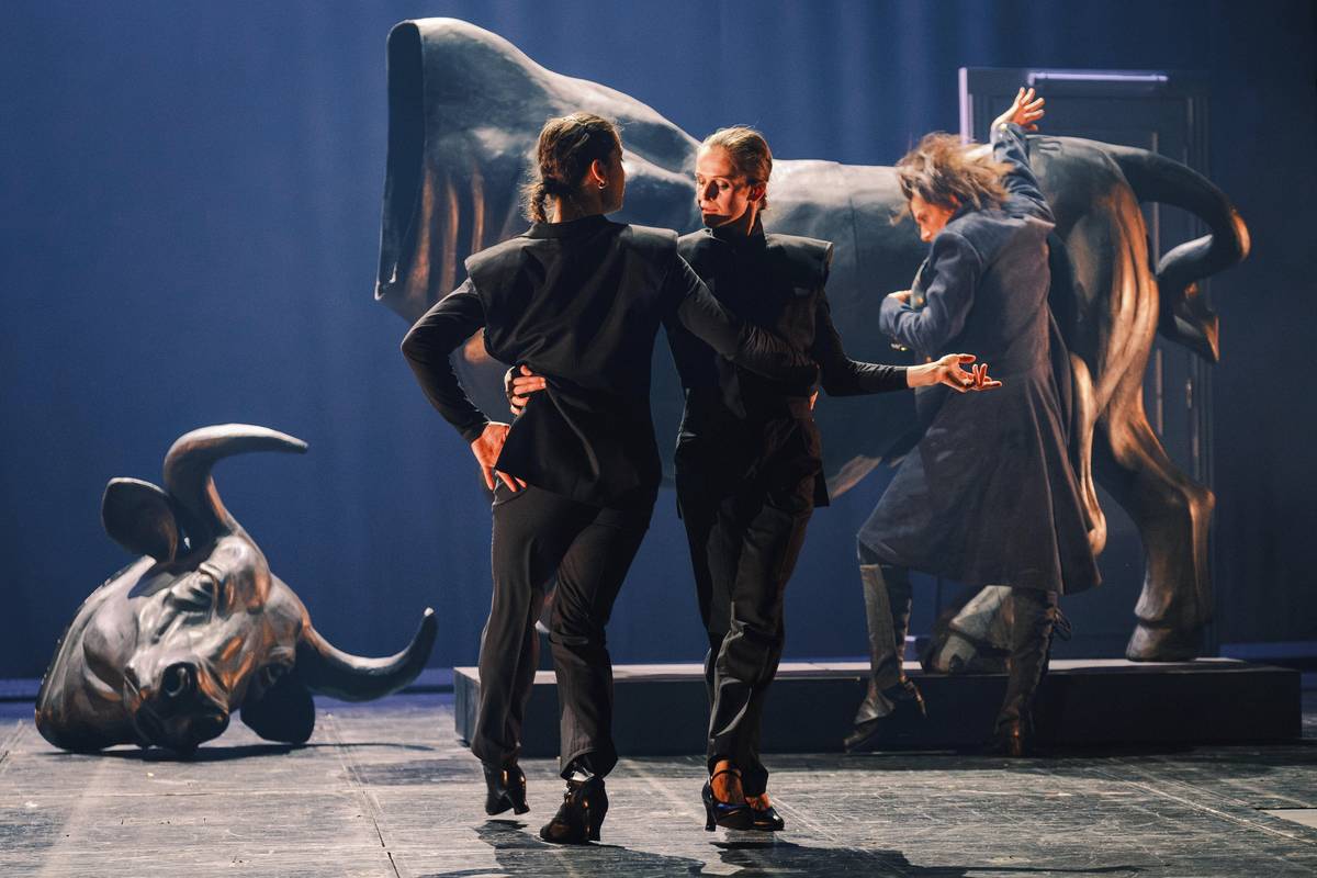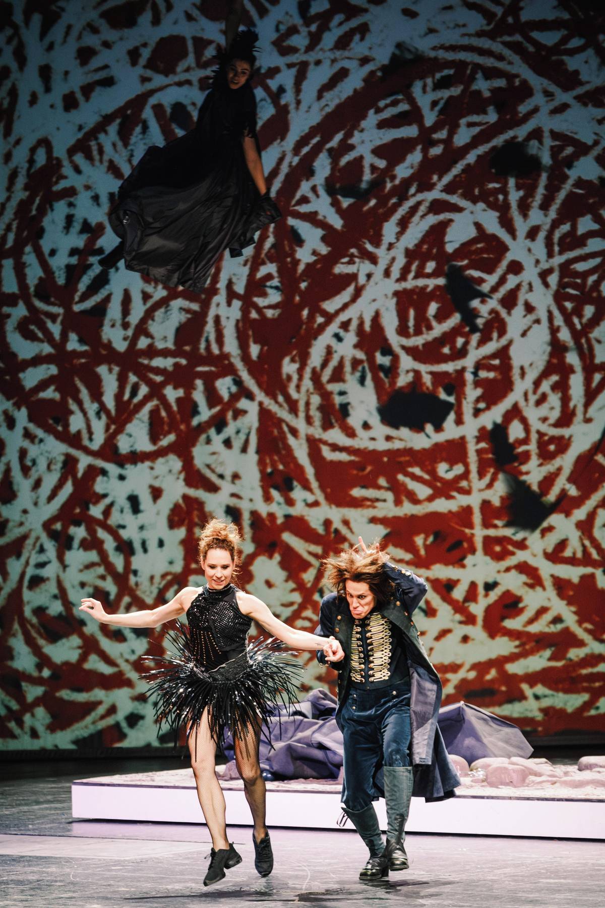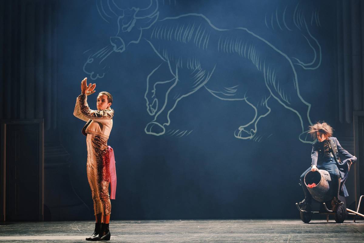 Lukas Blaha, Nikola Márová jako labuť, Katarína Sobinkovičová a Radim Vizváry v roli Barona Prášila.