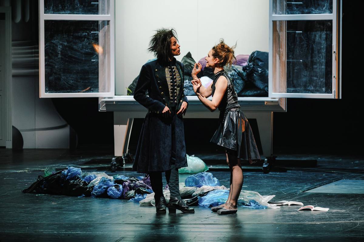 Nikola Márová jako labuť a Radim Vizváry v roli Barona Prášila.