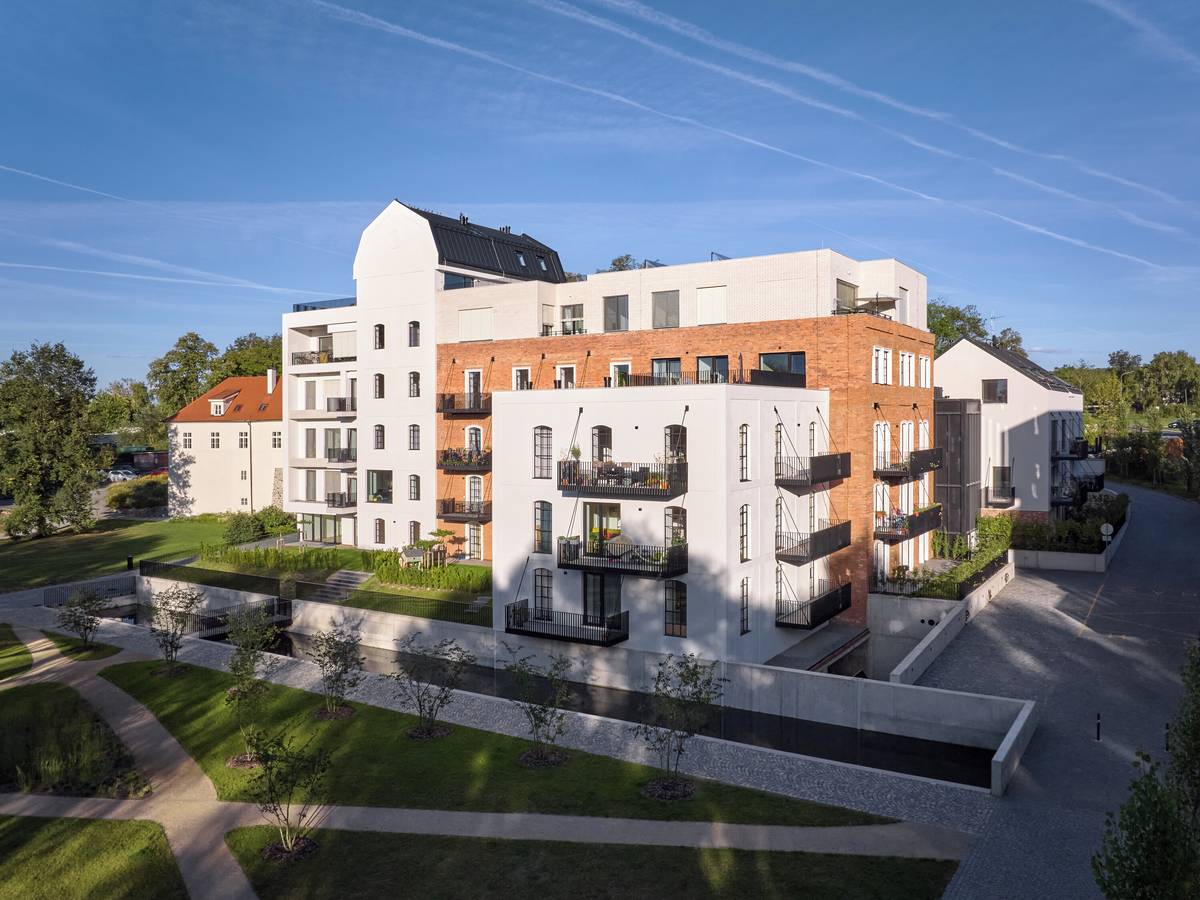 Žitný mlýn Boršov dnes. Novostavby jsou záměrně stylově odlišené od historické části.