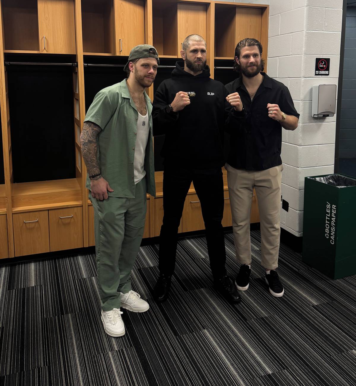 V USA se Procházka potkal i s hokejovými esy Davidem Pastrňákem (vlevo) a Pavlem Zachou (vpravo).