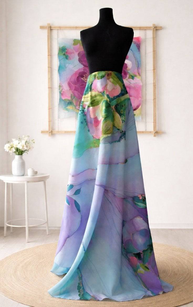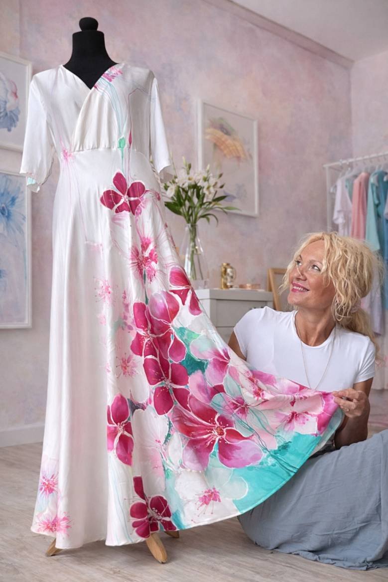 Malované hedvábné šaty