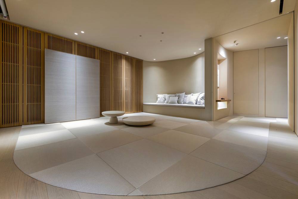 Zaoblené tvary různých prvků interiéru vycházejí částečně z principu feng-šuej.