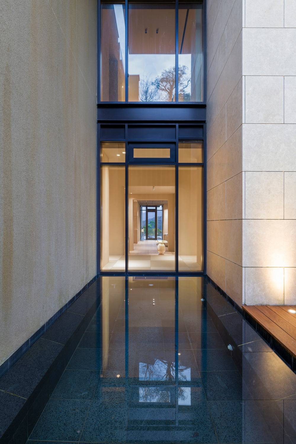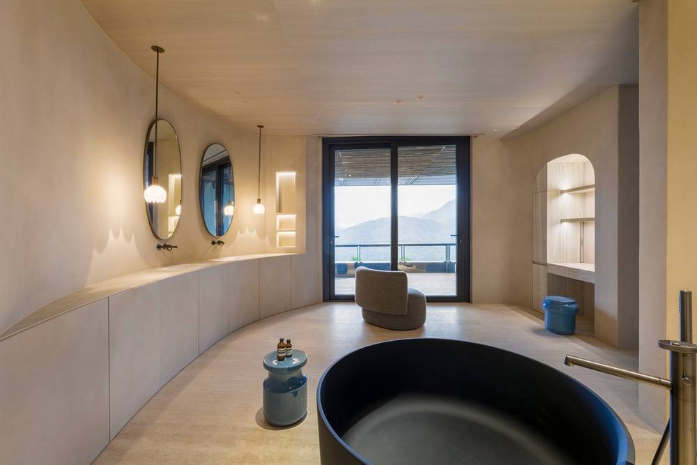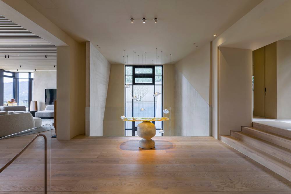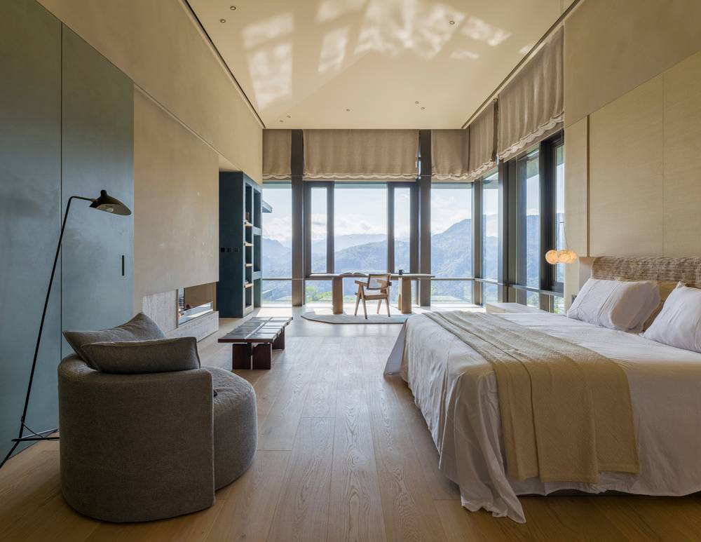 Vila v Tchaj-peji má interiér zařízený v souladu s okolní hornatou krajinou.