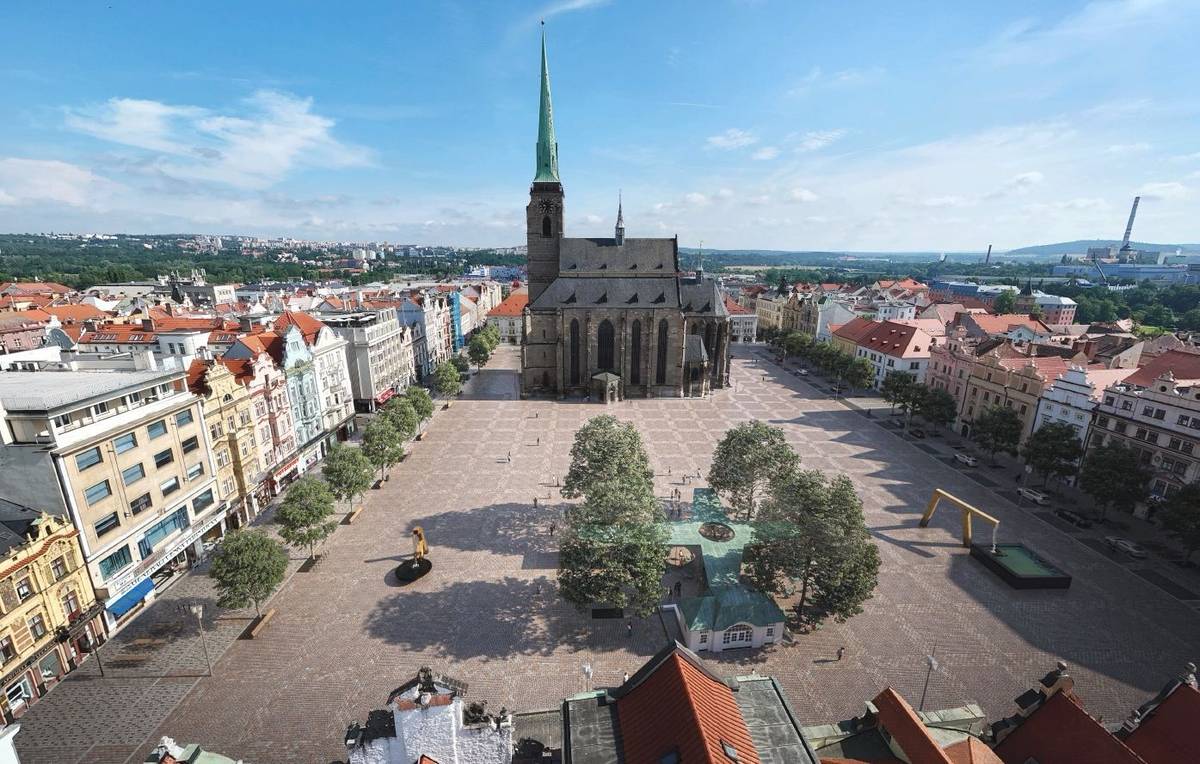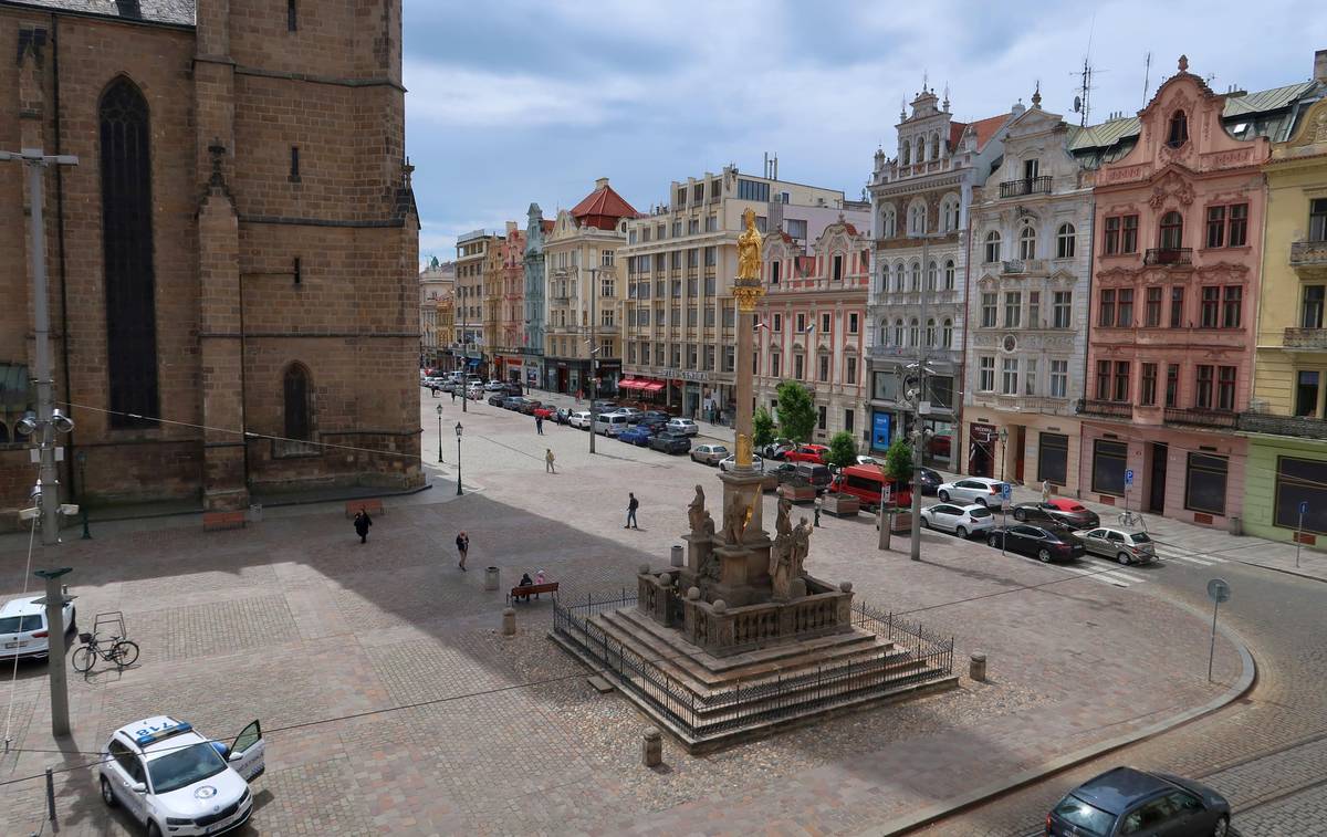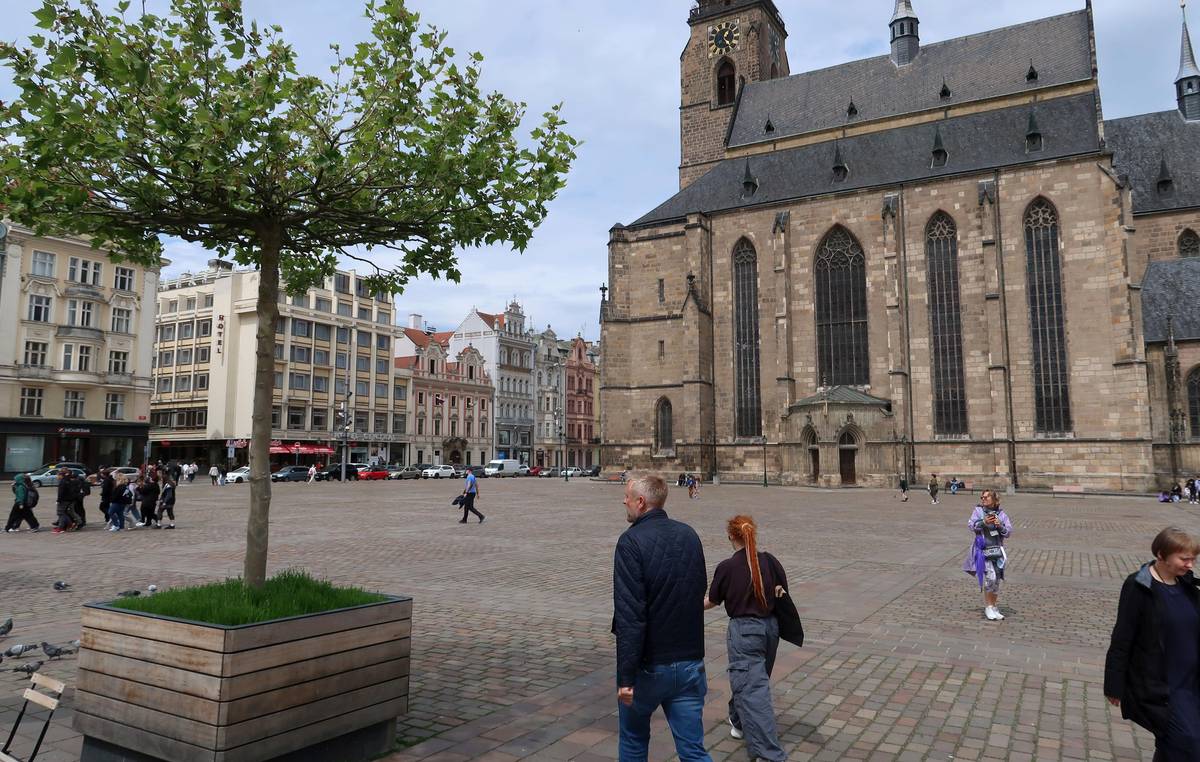 Chystaná proměna západní části náměstí Republiky: přibydou stromy, zmizí auta i vozovka.