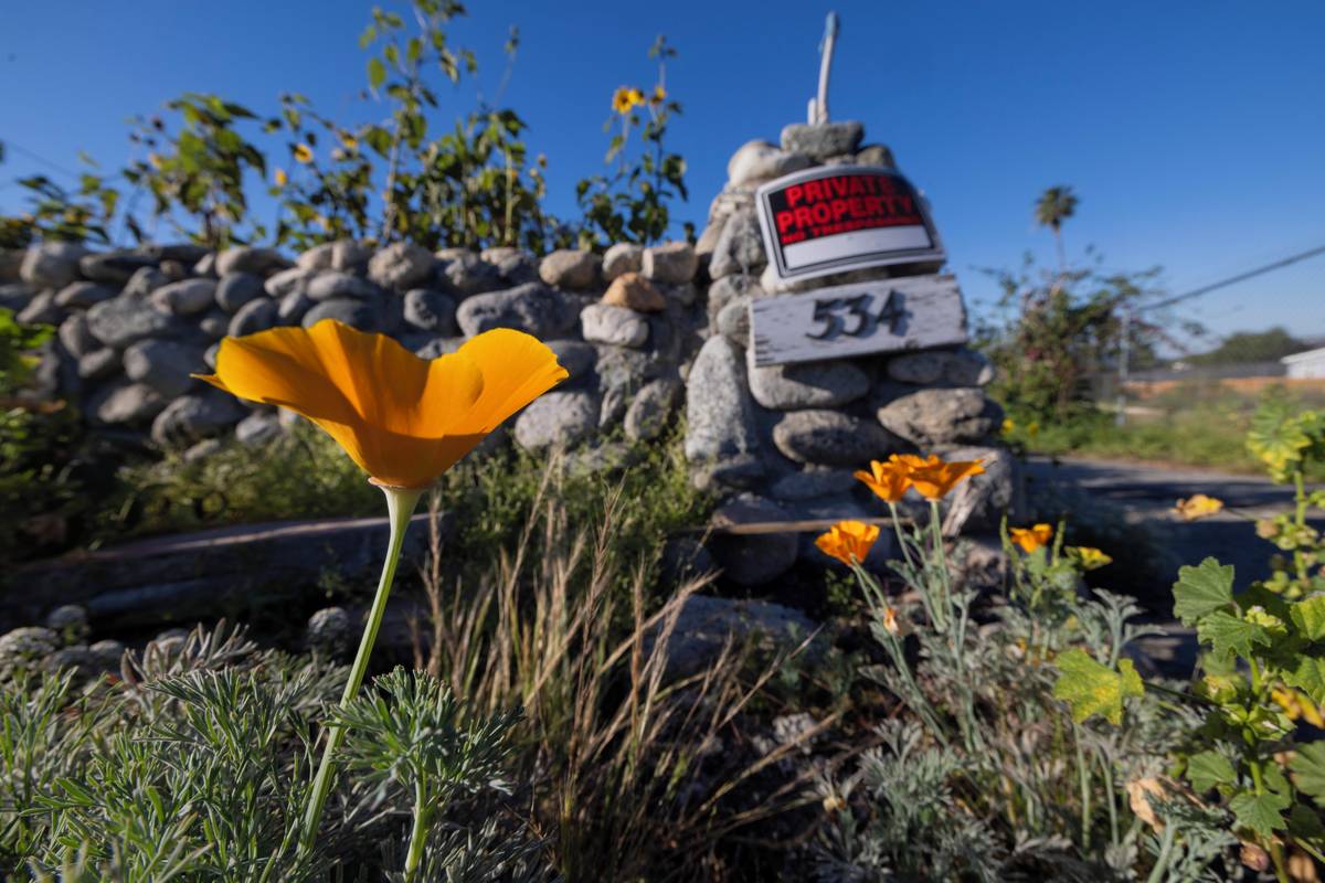 Když začátkem loňského roku zuřily v okolí Los Angeles lesní požáry, zbyla z domu Reného Amyho jen hromada toxického popela. (Kalifornské máky kvetou na místě, kde stál před požárem Eaton Fire dům, vyfoceno 19. března.)