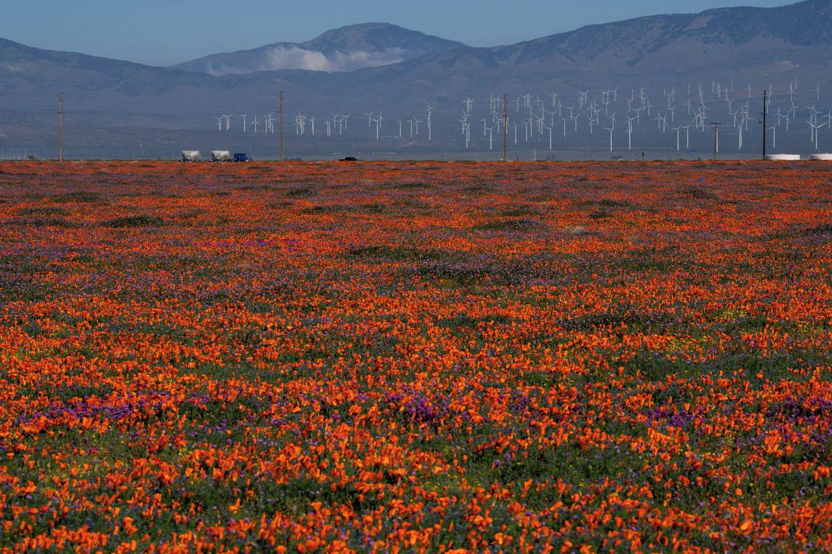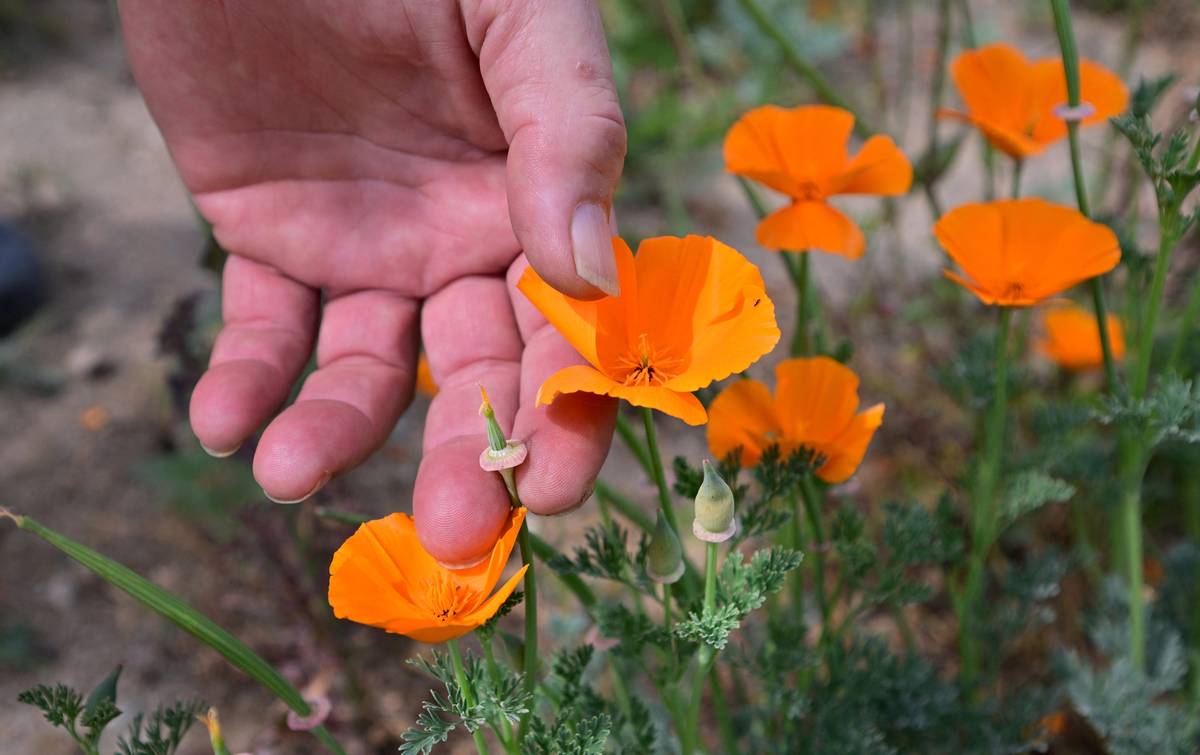 Volba kalifornského máku není náhodná: tato rostlina s květy připomínajícími tulipány je oficiální květinou Kalifornie. Než se Los Angeles rozrostlo do nekonečných dálek, byla Altadena známá jako „makový ráj“, vysvětlil Amy agentuře AFP. Rostlina je i na oficiálním erbu města. (Rozkvetlé máky v rezervaci Antelope Valley, 14. března.)