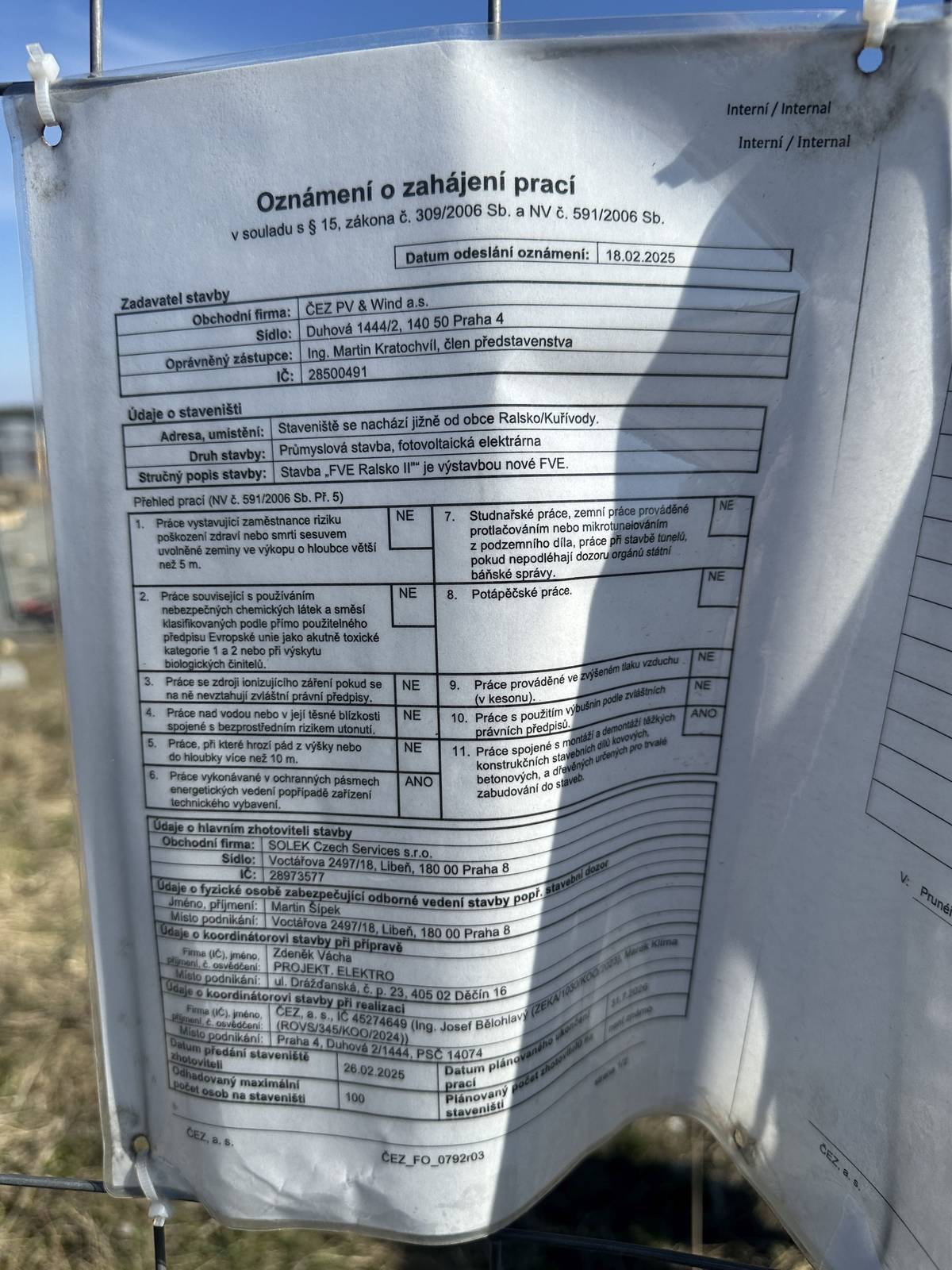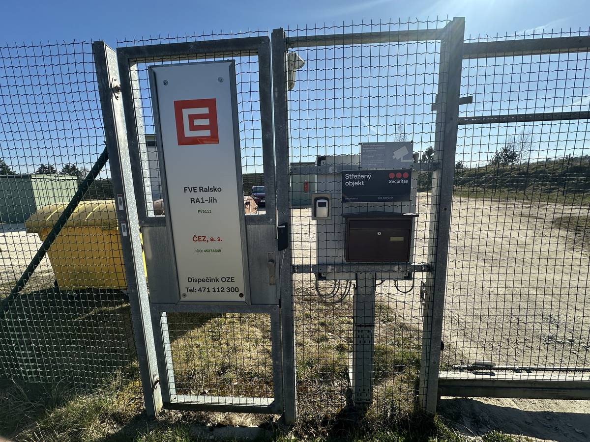 Solární elektrárny okolo Ralska, konkrétně uzavřená a střežená brána do prostoru elektrárny RA1 - Jih, jižně od Kuřívod.