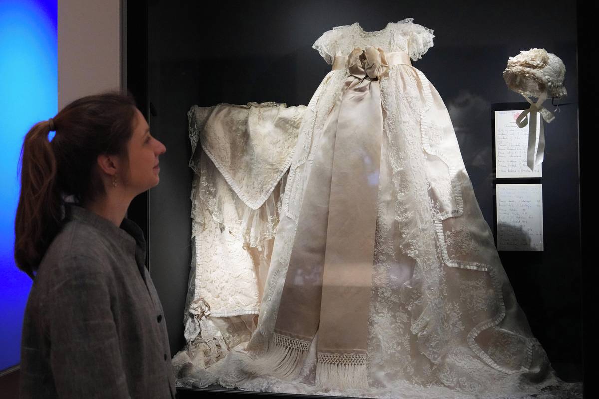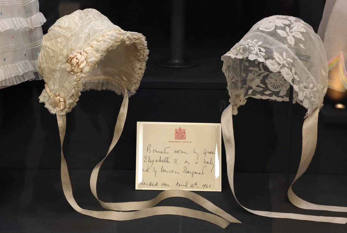 Dětské krajkové čepce, které nosila královna jako dítě.