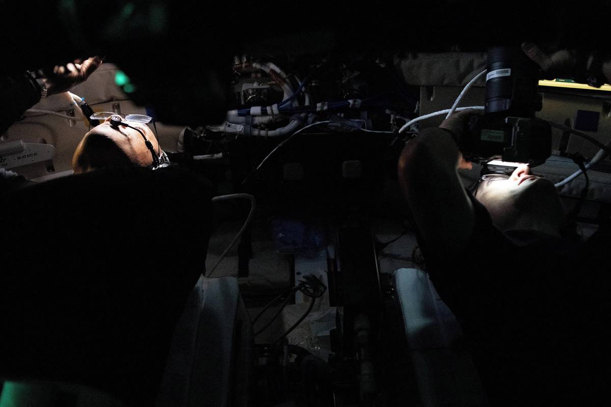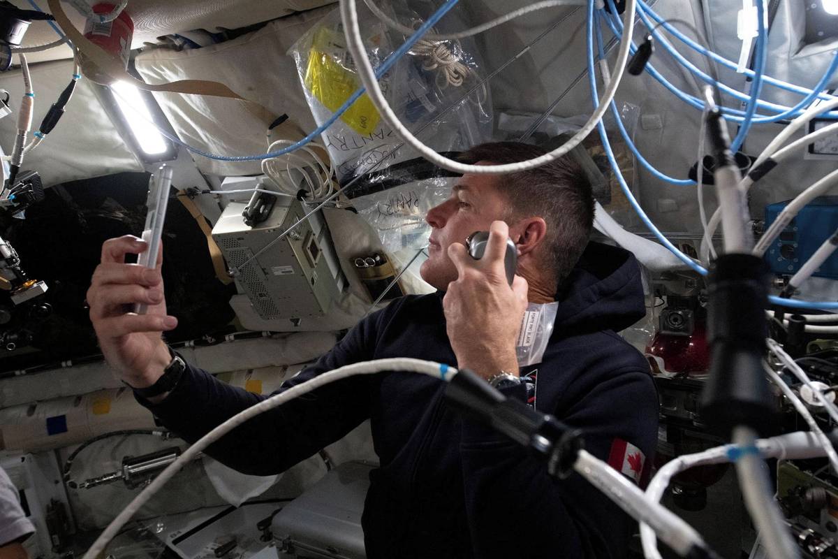 Mnoho technologií testovaných na palubě Orionu bylo ve vesmíru použito vůbec poprvé. Šlo například o optický komunikační systém Orion Artemis II, který využívá laserové paprsky k odesílání a přijímání zpráv ze Země. (Jeremy Hansen se holí během pátého dne letu.)