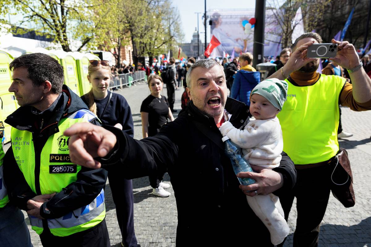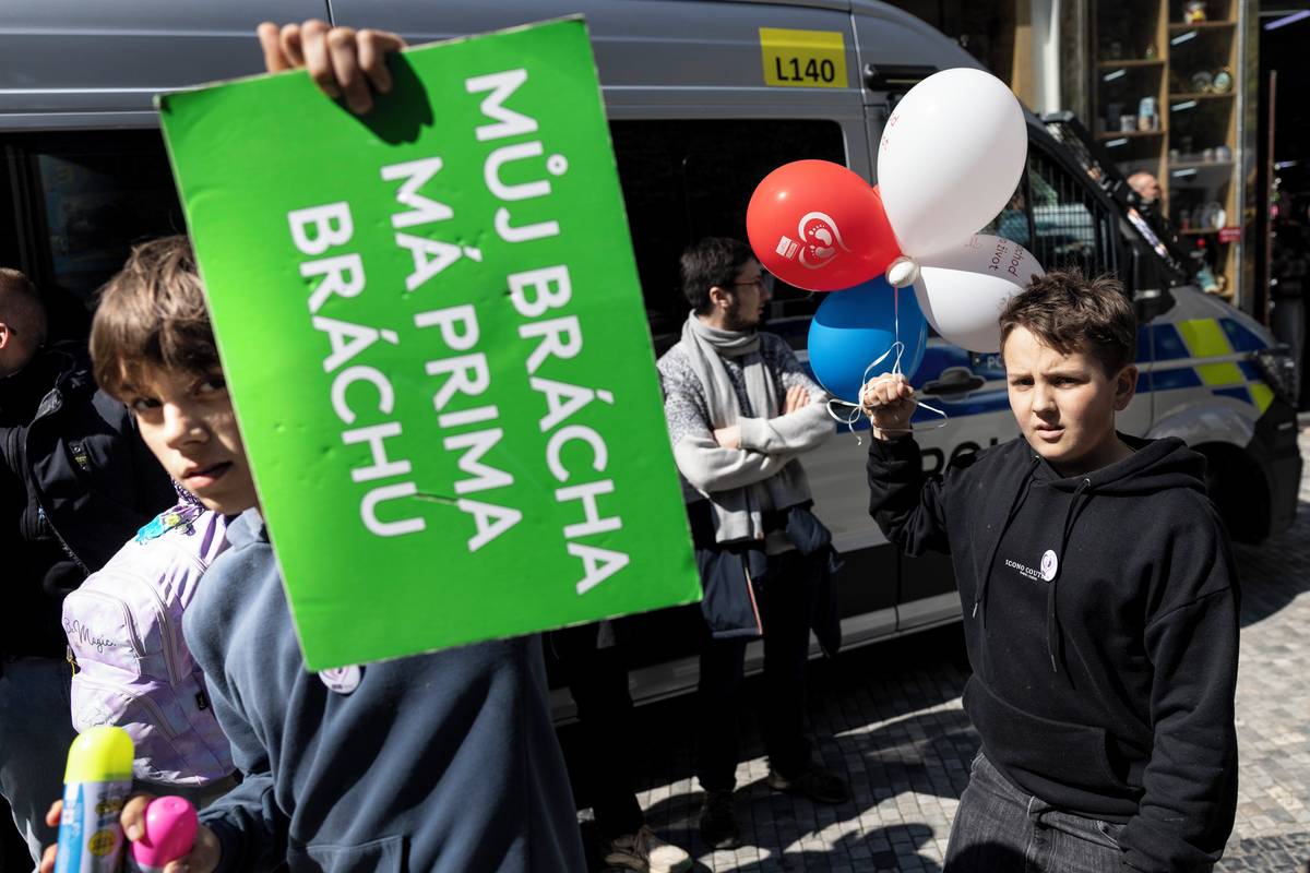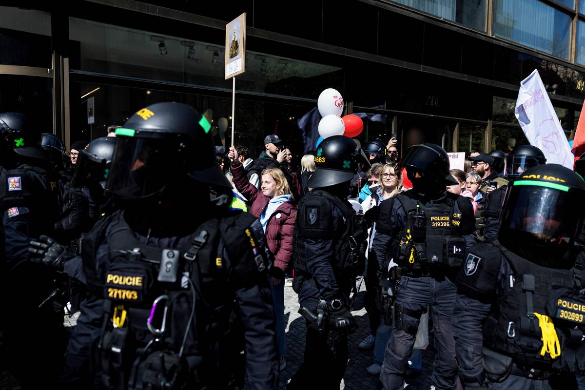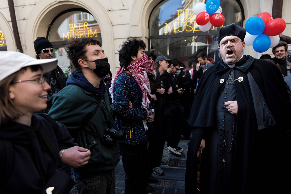 Na starém městě na něj čekali protestující z Praha je feministická.