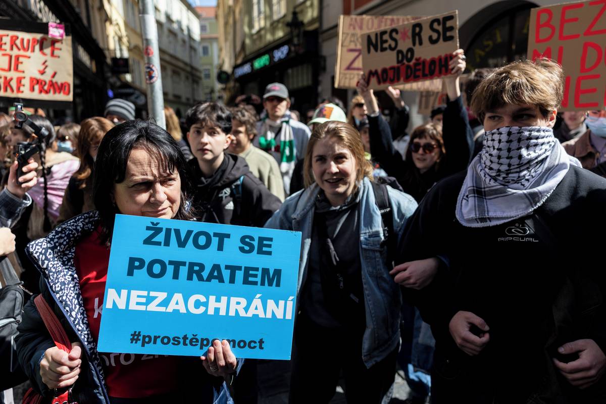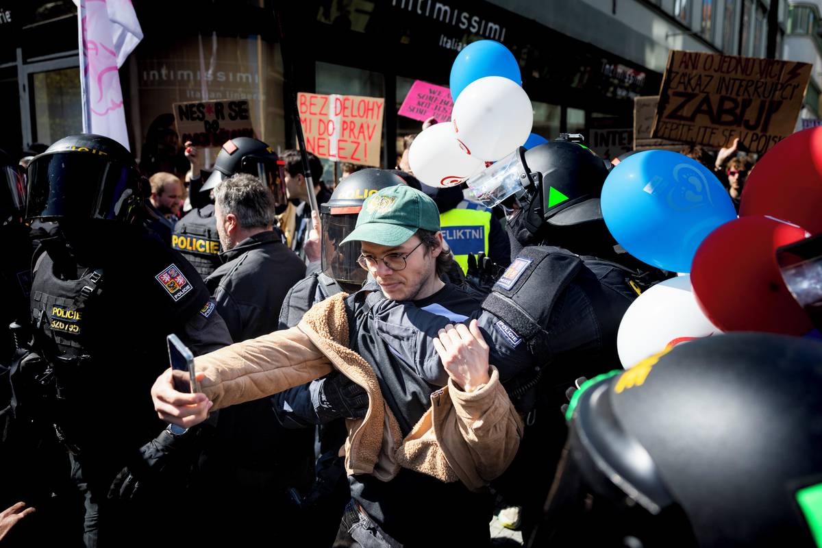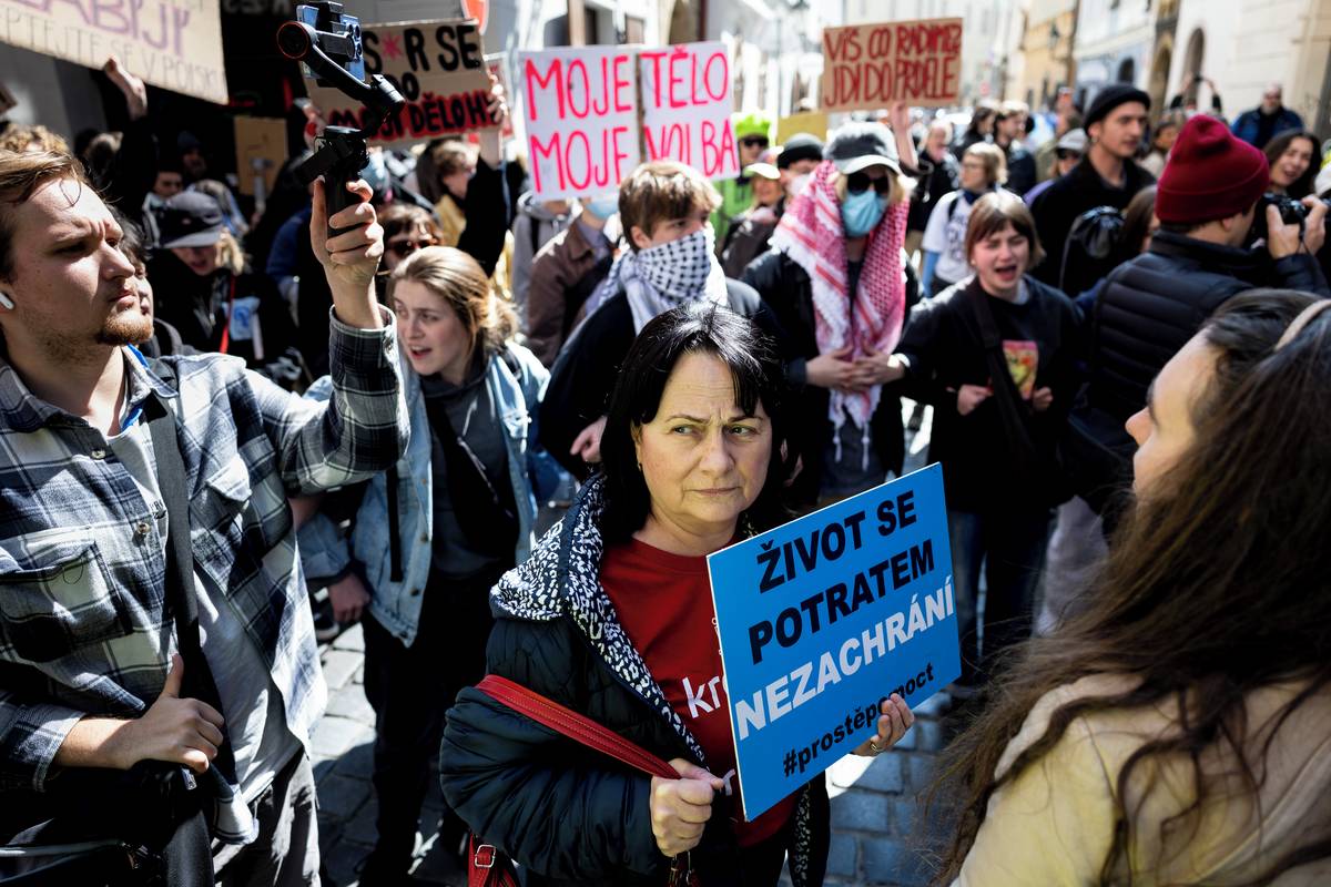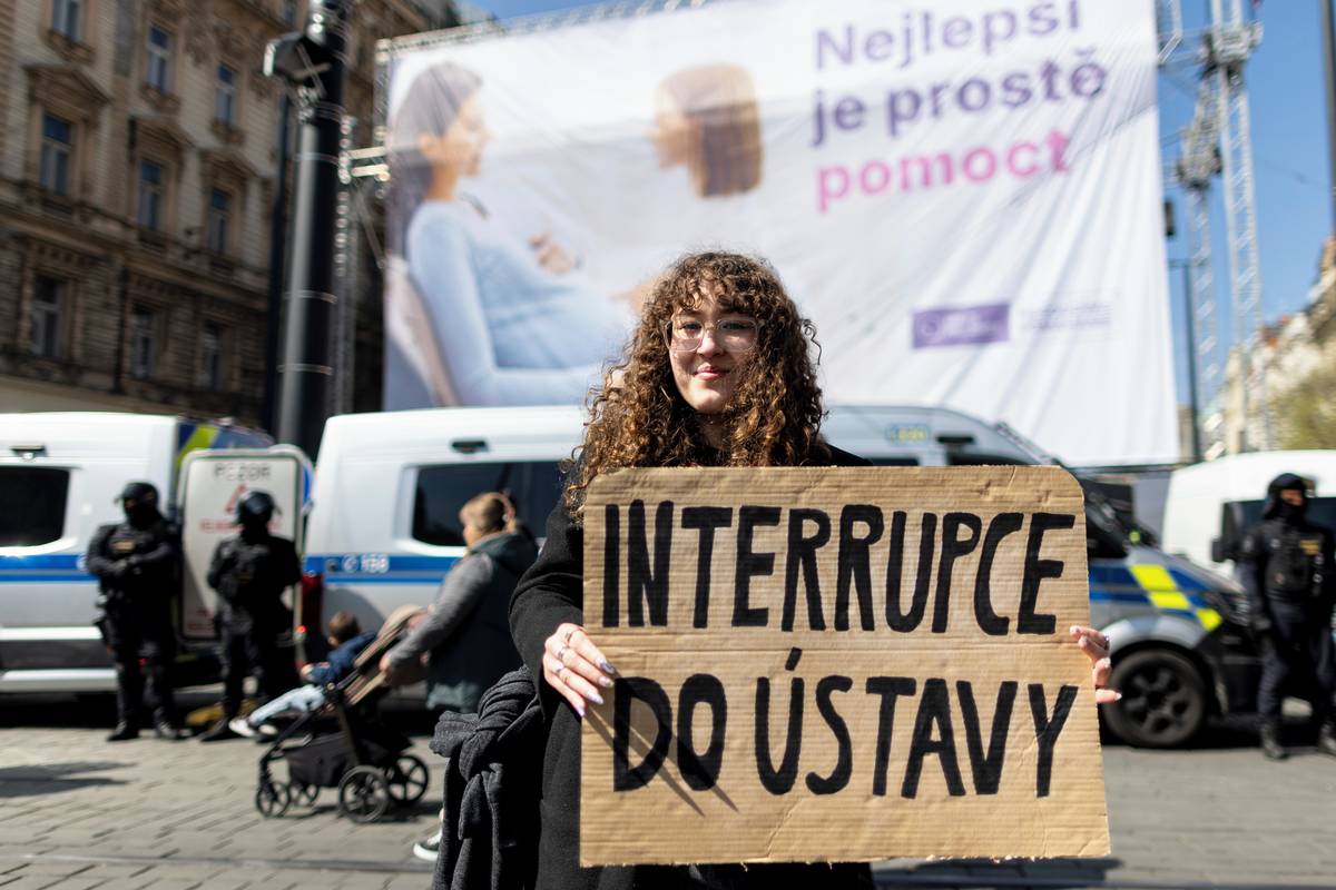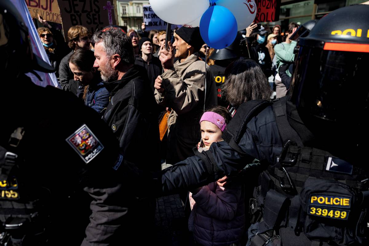 Účastníci Pochodu pro život se cestou na pražské Václavské náměstí setkali s odporem. Protestní akce Praha je feministická reagovala podporou potratů, které účastníci Pochodu pro život odmítají.