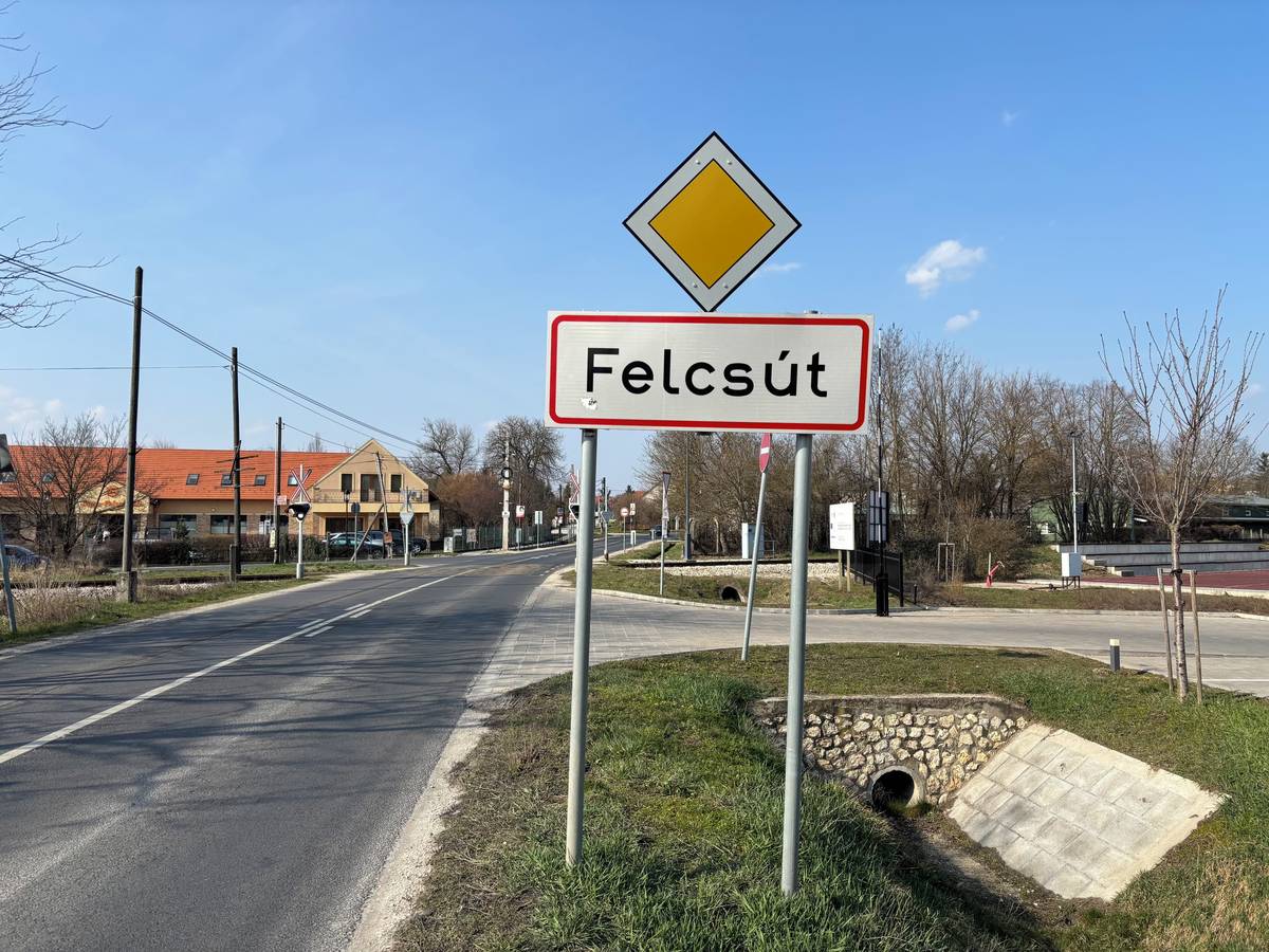 Felcsút. Tady začíná slušně vyasfaltovaná silnice bez děr.