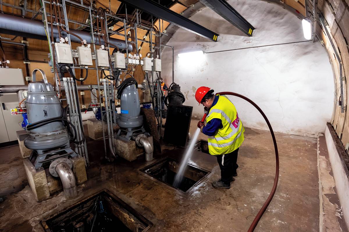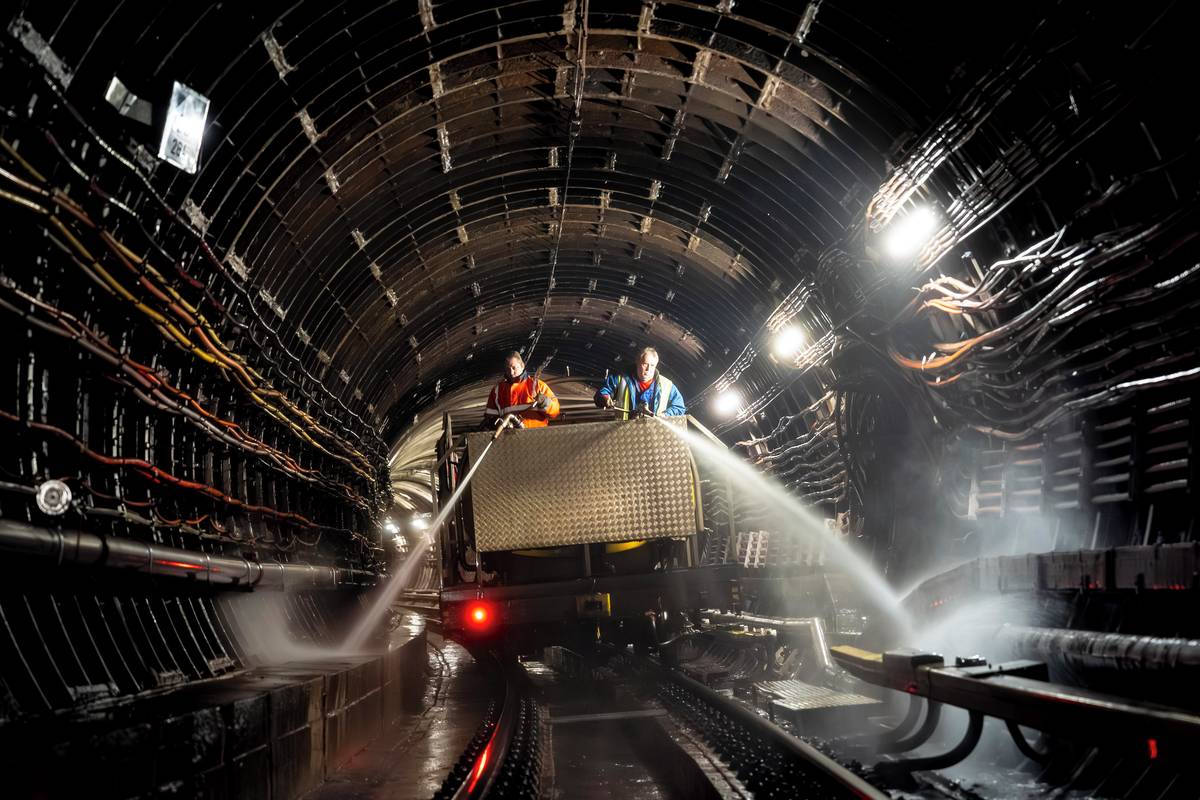 Po noční údržbě jsou tunely nad ránem připravené na první soupravy a cestující.