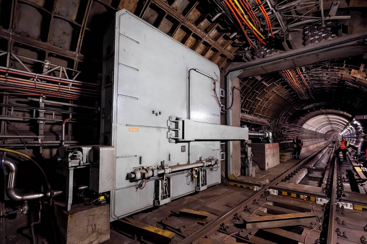 Úseky v metru oddělují dveře, které po uzavření můžou chránit v případě povodně či útoku.
