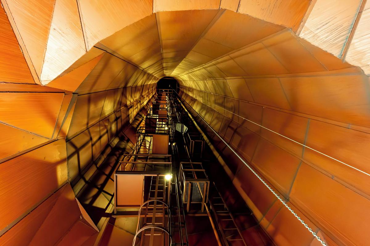 Ventilační tunel na povrch lze použít i jako únikovou cestu. Je 42 metrů dlouhý.