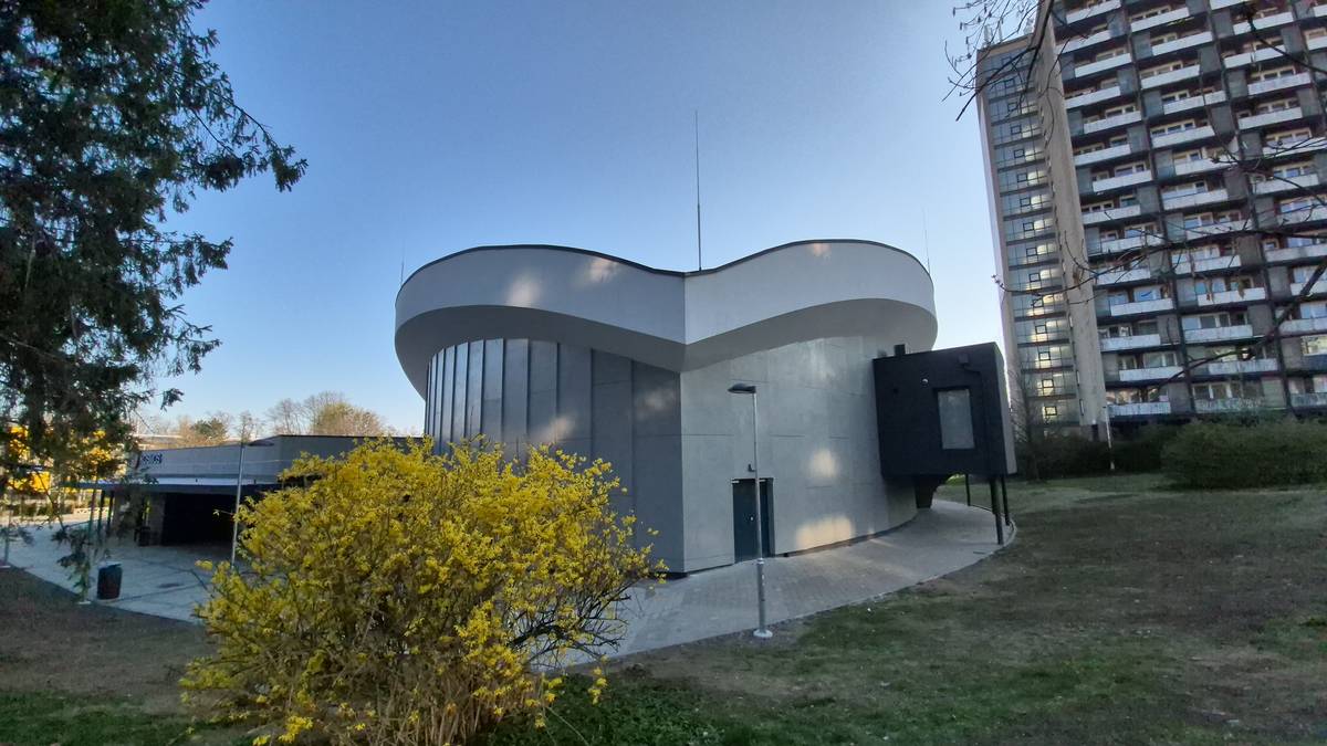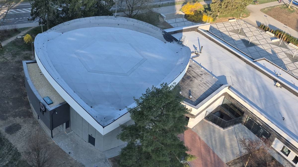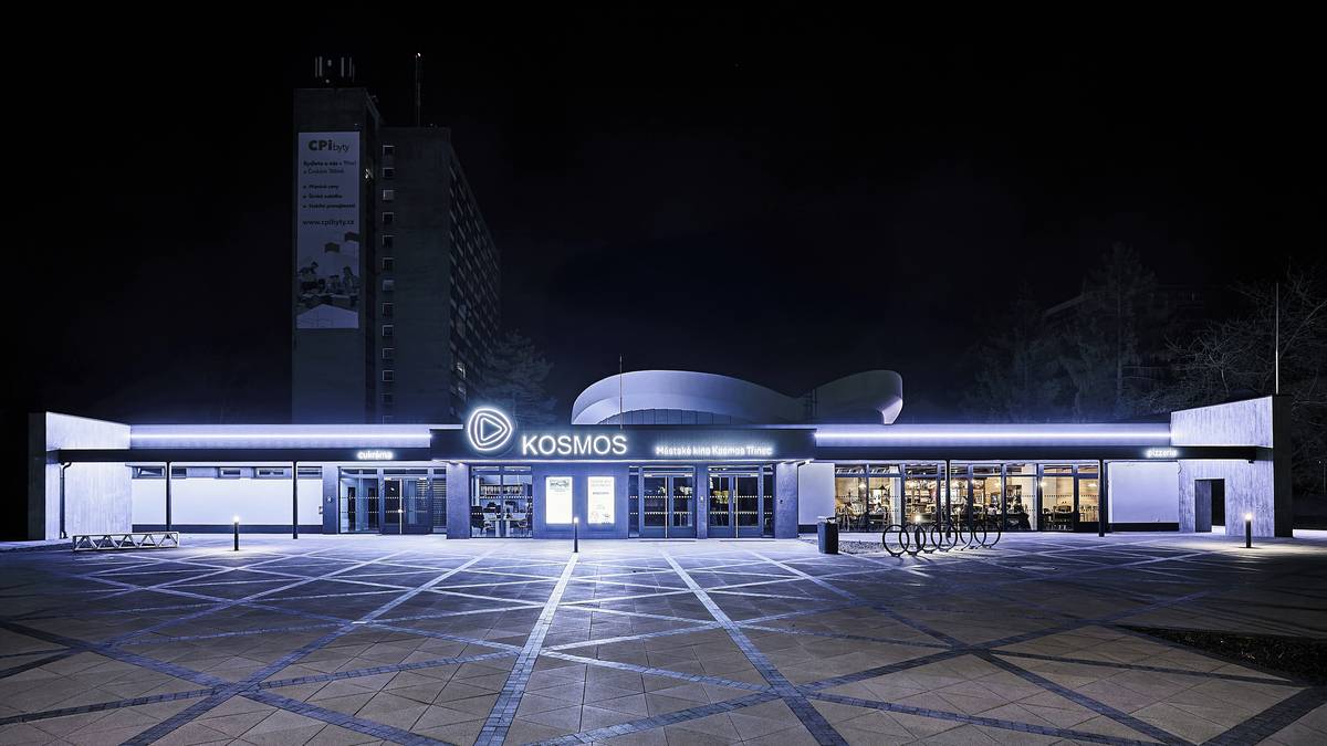 Boční pohled na střechu Kina Kosmos v Třinci