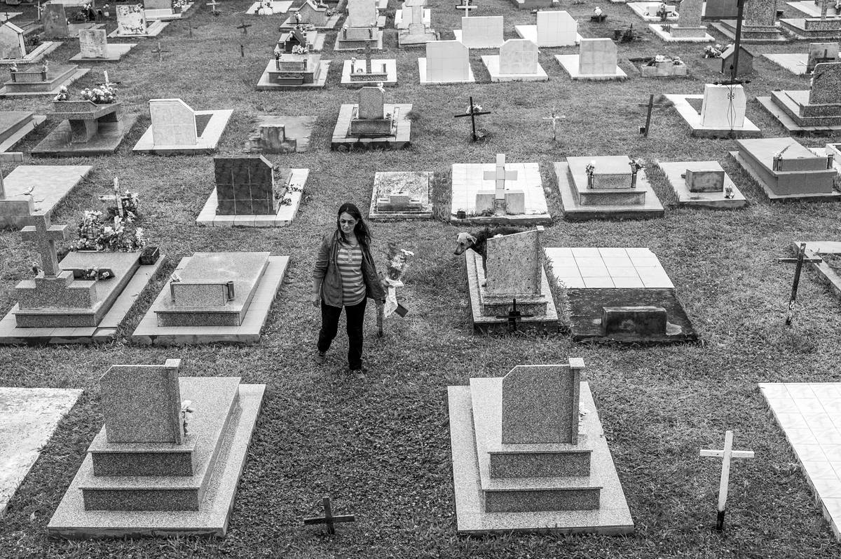 Mirta María Velzi jde k hrobu své dcery, která zemřela v 17 letech na nádor na mozku. Její otec pracoval dlouhá léta na farmách, kde byl vystaven působení mnoha chemických látek. (Entre Ríos, Argentina, 21. listopadu 2014)