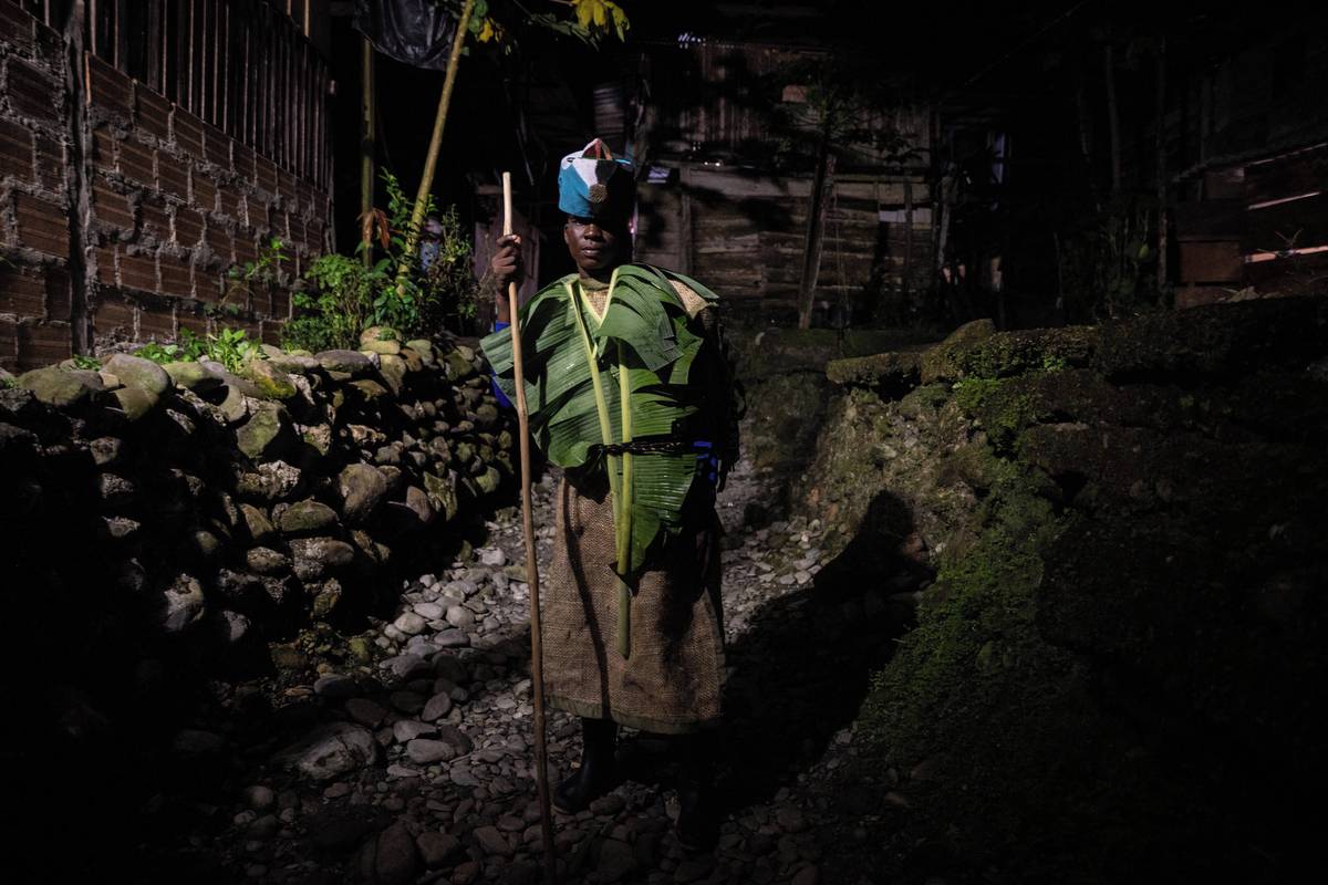 Oceněným se stal i příběh od Evera Andrése Mercado Puentese. Zachytil komunitu lidí afrického původu Juntas, která žije hluboko v kolumbijském deštném pralese na pobřeží Tichého oceánu a je přístupná pouze po desetihodinové plavbě lodí po řece Yurumanguí. (Na snímku Eider Calimeño, který je jedním z 33 mužů, jenž vystupují jako Matachín: ti, kteří se zavázali k účasti na Manacillos. Tato povinnost se dědí po blízkých mužských příbuzných a slouží k uctění zesnulých nebo vysídlených předků. Juntas, Buenaventura, Kolumbie, 29. března 2024.)